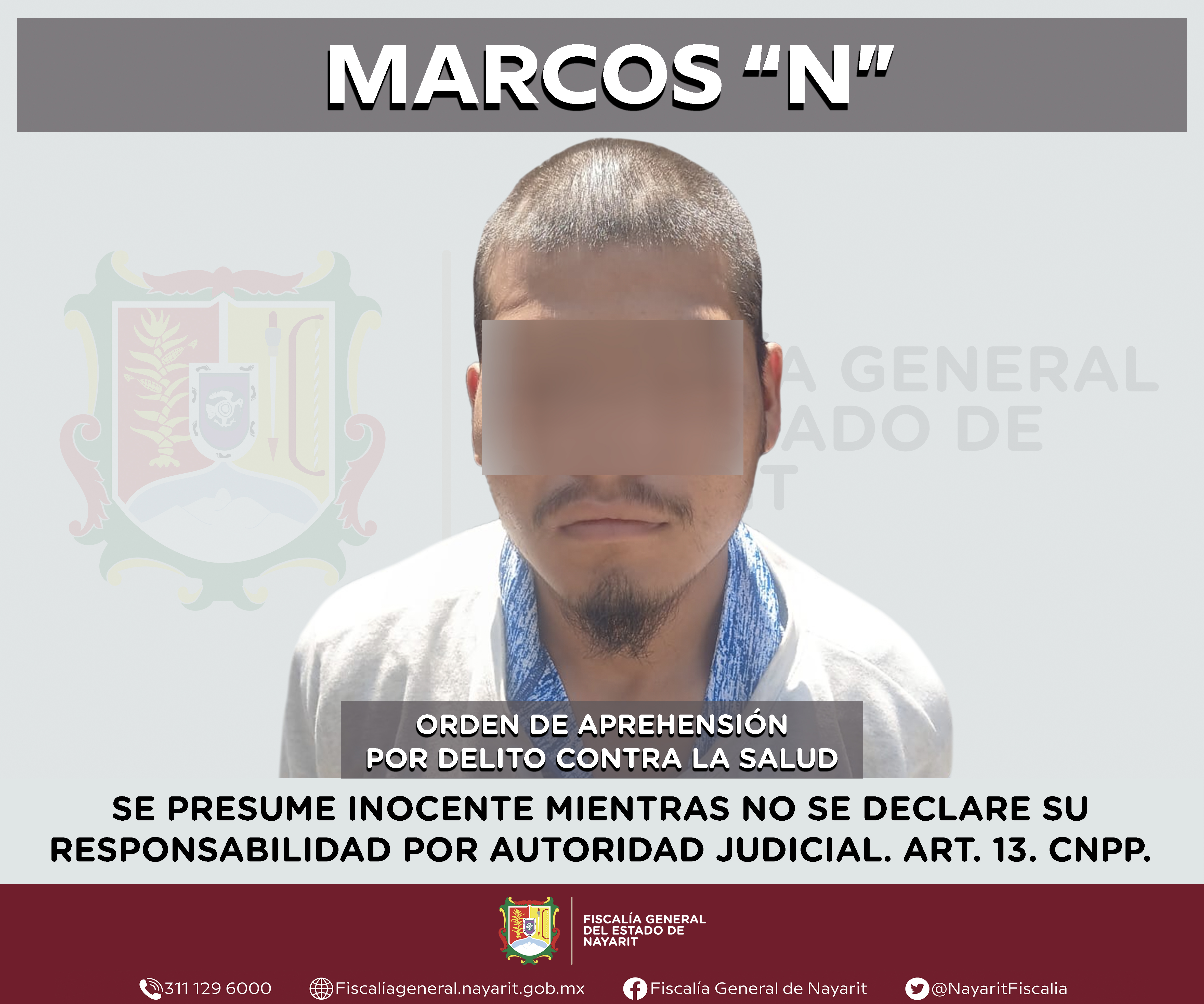 La Fiscalía General de Nayarit a través de la Agencia de Investigación Criminal ejecutó una orden de aprehensión en la ciudad de Tepic contra Marcos “N”, por su presunta participación en hechos que según apreciación de la ley encuadran el del...