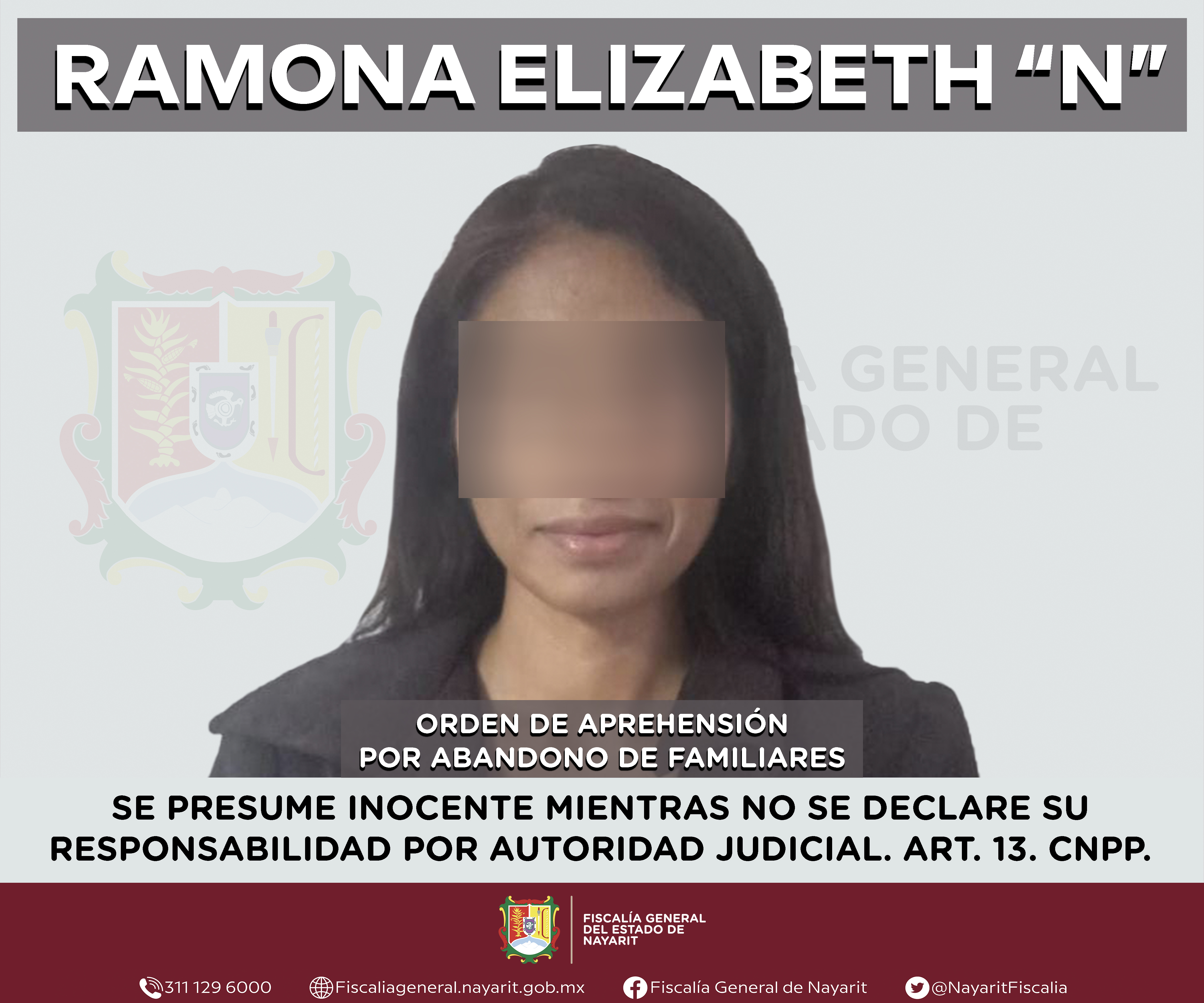 La Fiscalía General de Nayarit a través de la Agencia de Investigación Criminal ejecutó una orden de aprehensión en el municipio de Xalisco contra Ramona Elizabeth “N”, por su presunta participación en hechos que según apreciación de la ley e...