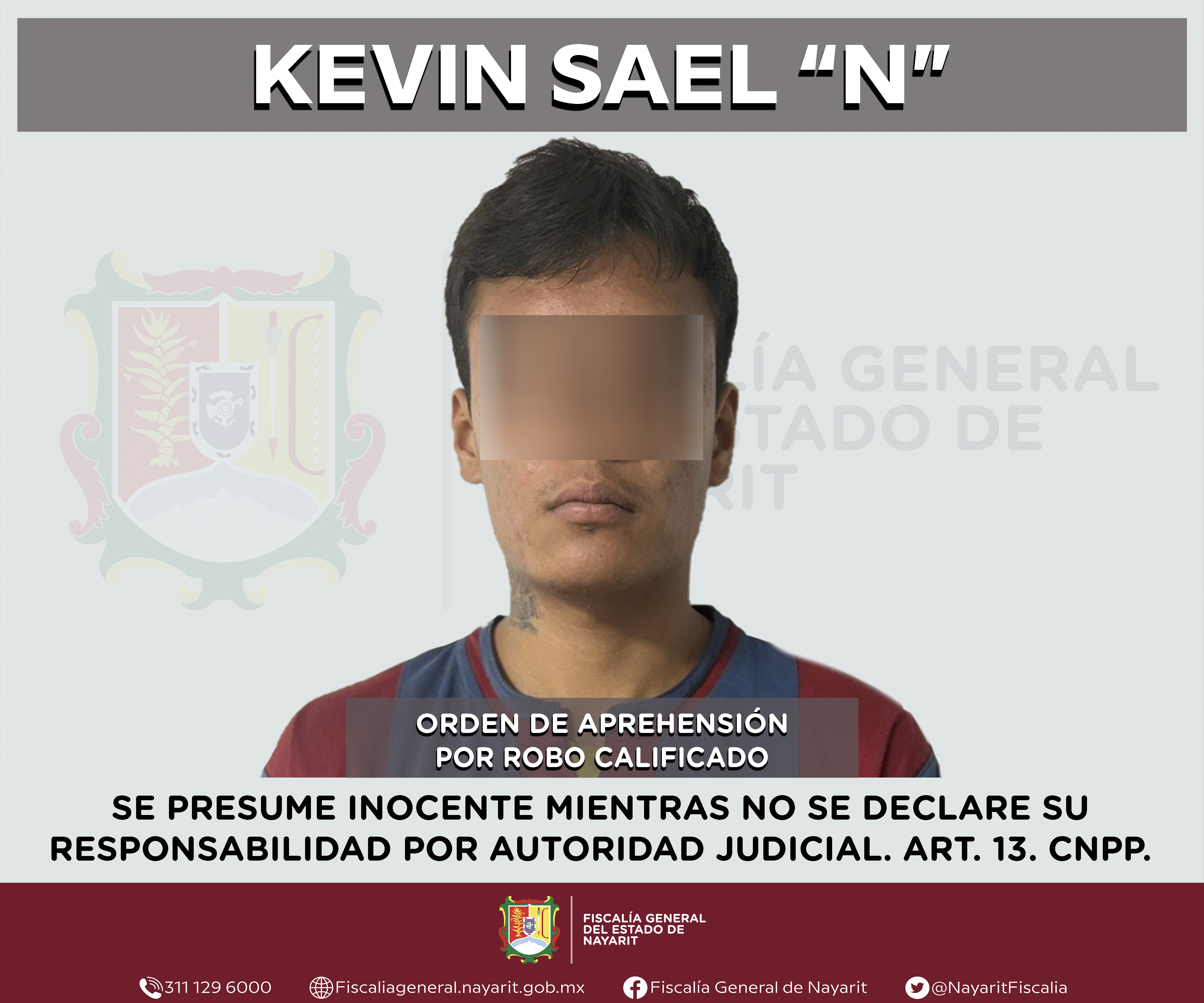 La Fiscalía General de Nayarit a través de la Agencia de Investigación Criminal ejecutó una orden de aprehensión en la ciudad de Tepic contra Kevin Sael “N”, por su presunta participación en hechos que según apreciación de la ley encuadran el...
