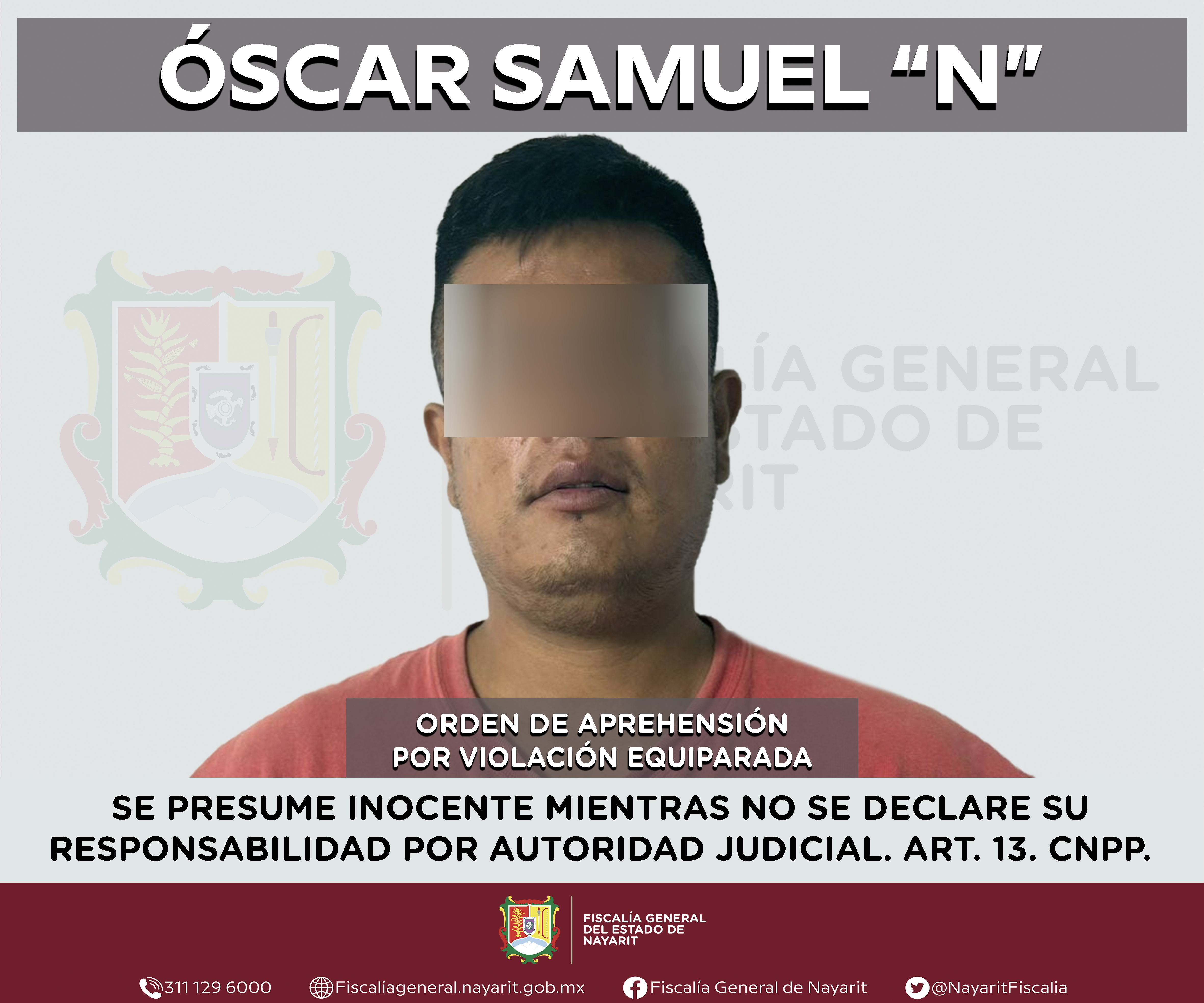 Elementos de la Agencia de Investigación Criminal de Nayarit ejecutaron una orden de aprehensión en la capital nayarita contra Óscar Samuel “N”, por su presunta participación en hechos que según apreciación de la ley encuadran el delito de viol...