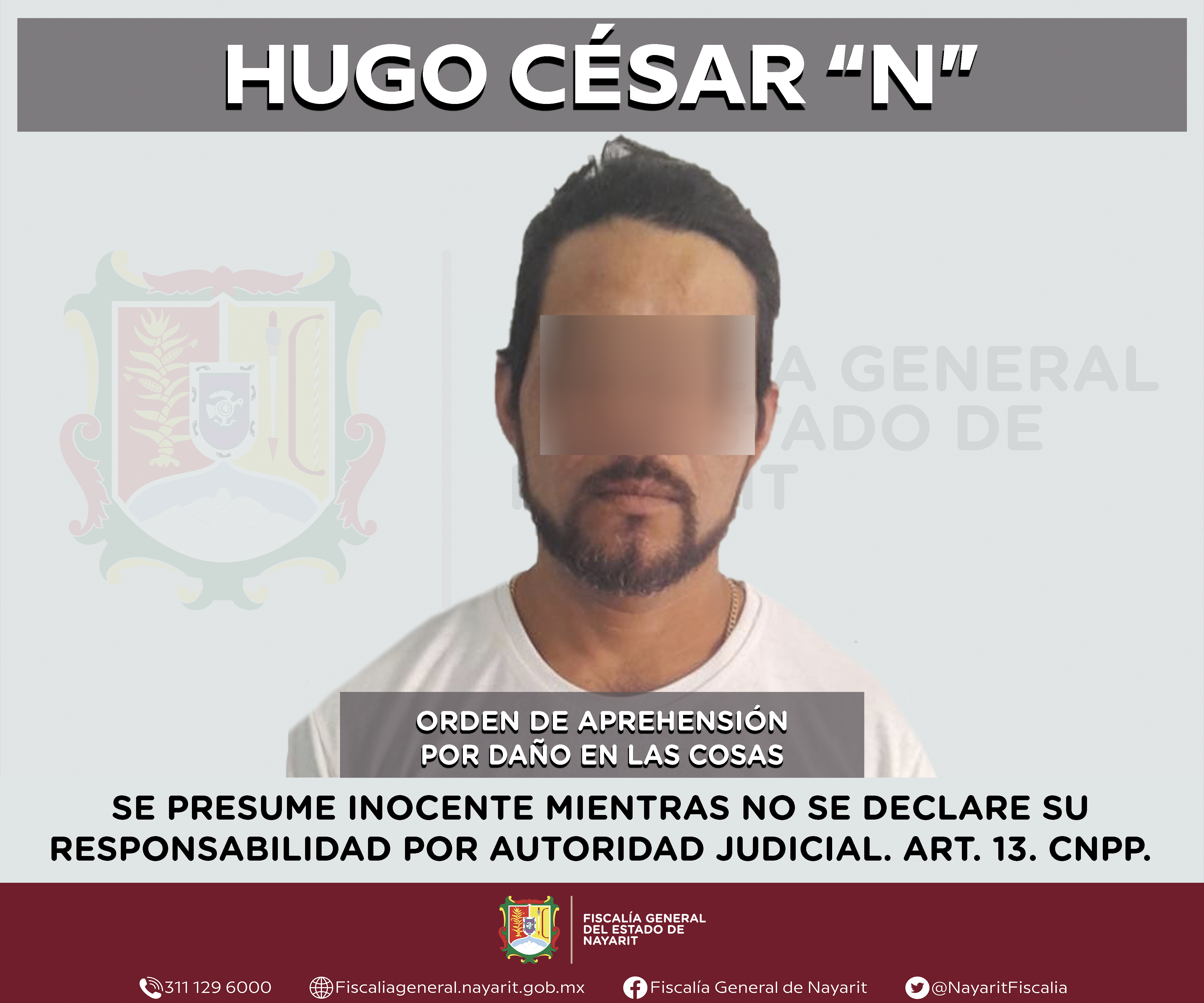 Elementos de la Agencia de Investigación Criminal de Nayarit ejecutaron una orden de aprehensión en la ciudad de Tepic contra Hugo César “N”, por su presunta participación en hechos que según apreciación de la ley encuadran el delito de daño e...