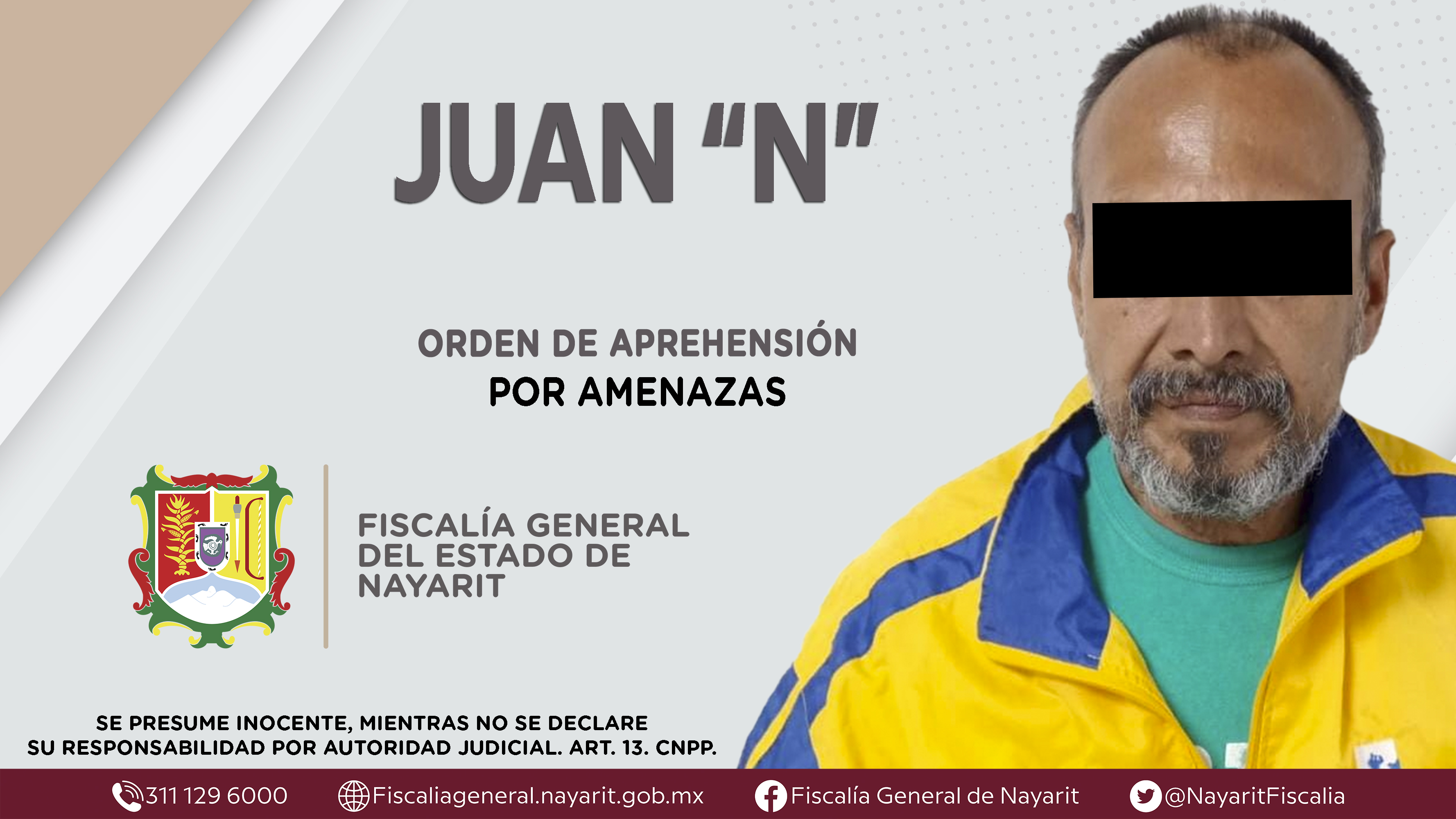 Elementos de la Agencia de Investigación Criminal de Nayarit ejecutaron una orden de aprehensión en la ciudad de Tepic contra Juan “N”, por su presunta participación en hechos que según apreciación de la ley configuran el delito de amenazas, com...