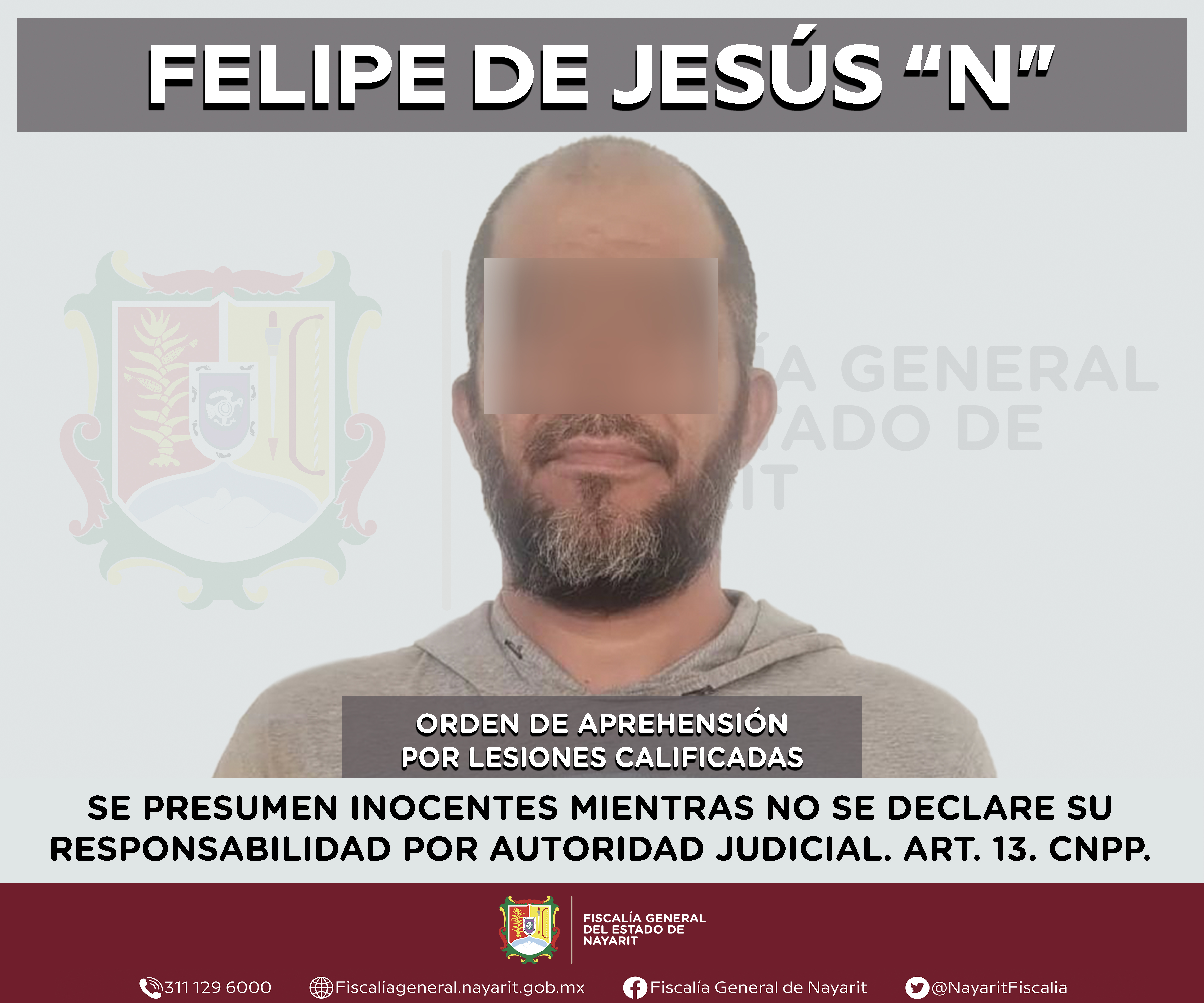 Elementos de la Agencia de Investigación Criminal de Nayarit ejecutaron una orden de aprehensión en la localidad Las Lomas, municipio de Bahía de Banderas contra Felipe de Jesús “N”, por su presunta participación en hechos que según apreciació...