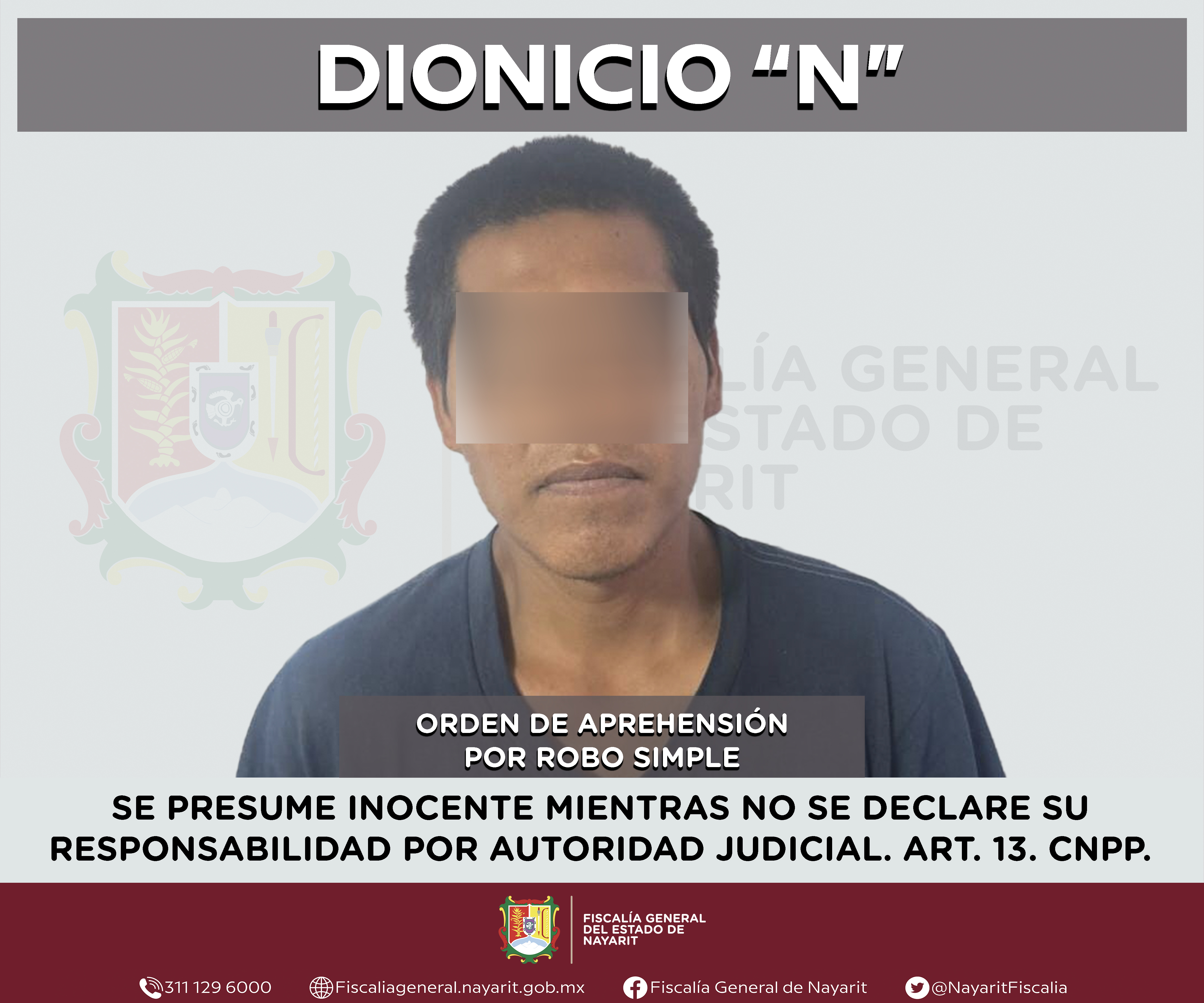 La Fiscalía General de Nayarit a través de la Agencia de Investigación Criminal ejecutó una orden de aprehensión en la capital nayarita contra Dionicio “N”, por su probable participación en hechos que para la ley configuran el delito de robo si...