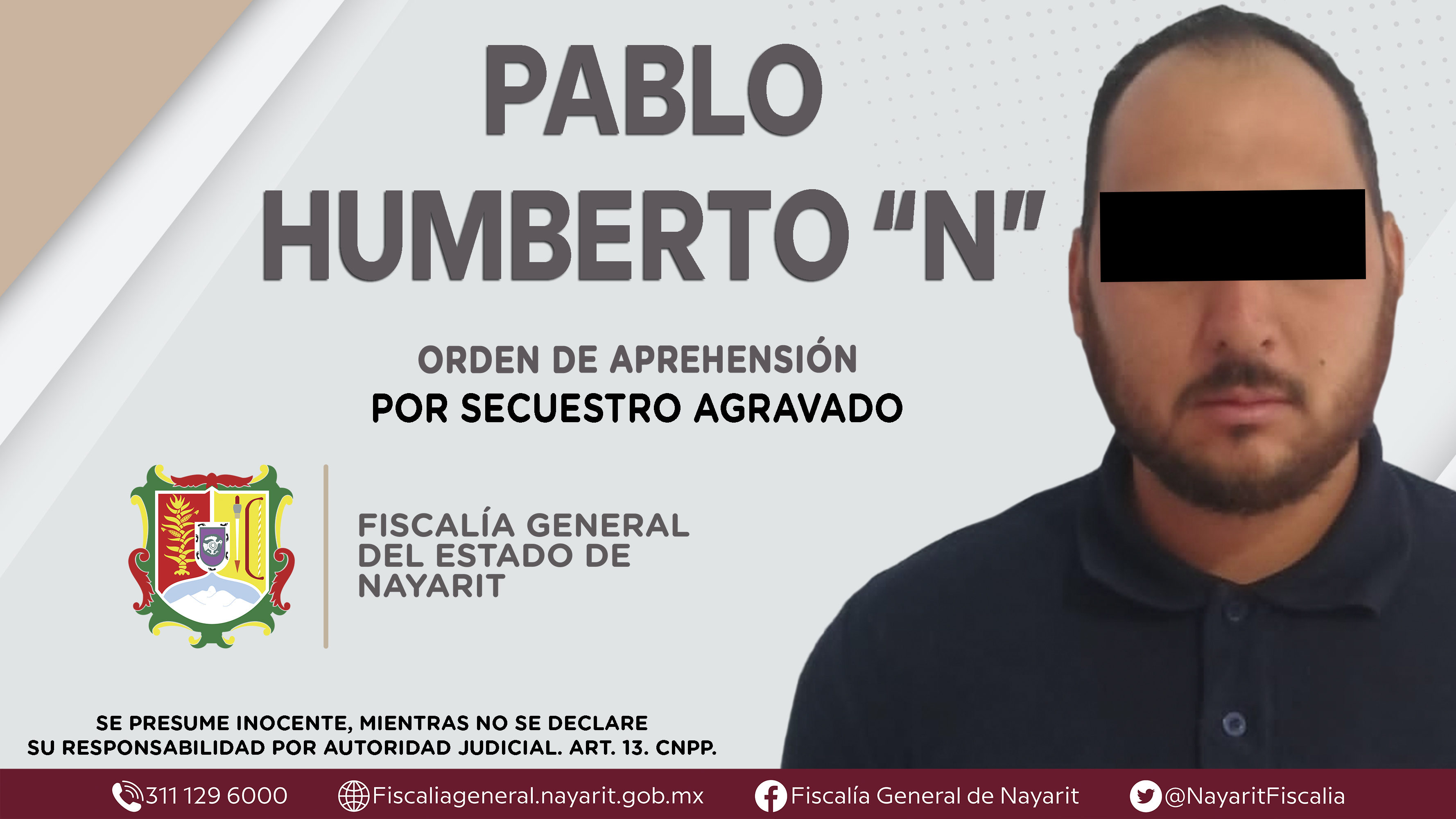 La Fiscalía General del Estado a través de la Agencia de Investigación Criminal dio cumplimiento a una orden de aprehensión en el municipio de Xalisco contra Pablo Humberto “N”, por su presunta participación en hechos que según apreciación de ...