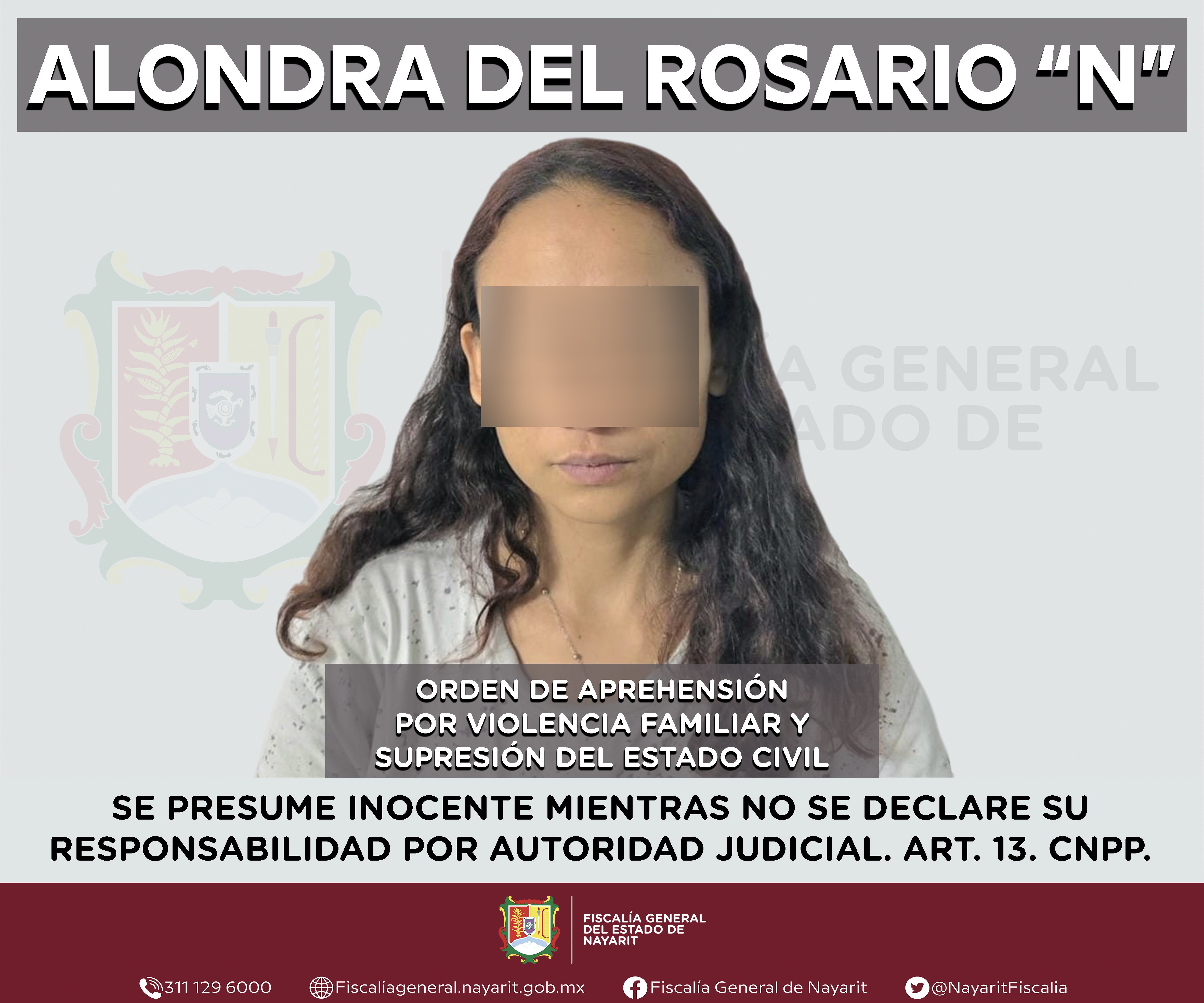 La Fiscalía General de Nayarit a través de la Agencia de Investigación Criminal ejecutó una orden de aprehensión en la ciudad de Tepic contra Alondra del Rosario “N”, por su probable participación en hechos que para la ley configuran los delito...