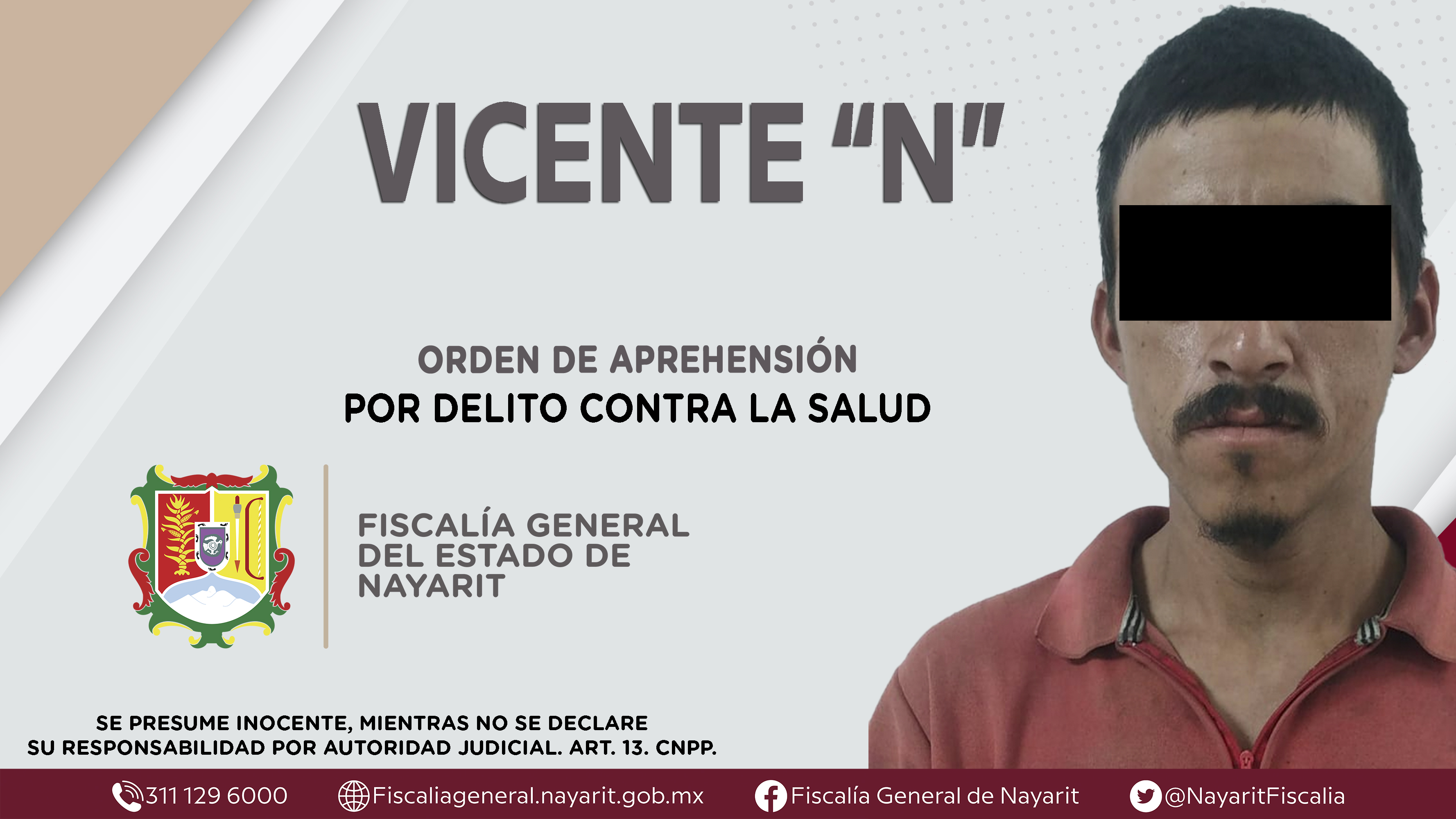 Elementos de la Agencia de Investigación Criminal de Nayarit ejecutaron una orden de aprehensión en la ciudad de Tepic contra Vicente “N”, por su presunta participación en hechos que según apreciación de la ley configuran el delito contra la sal...