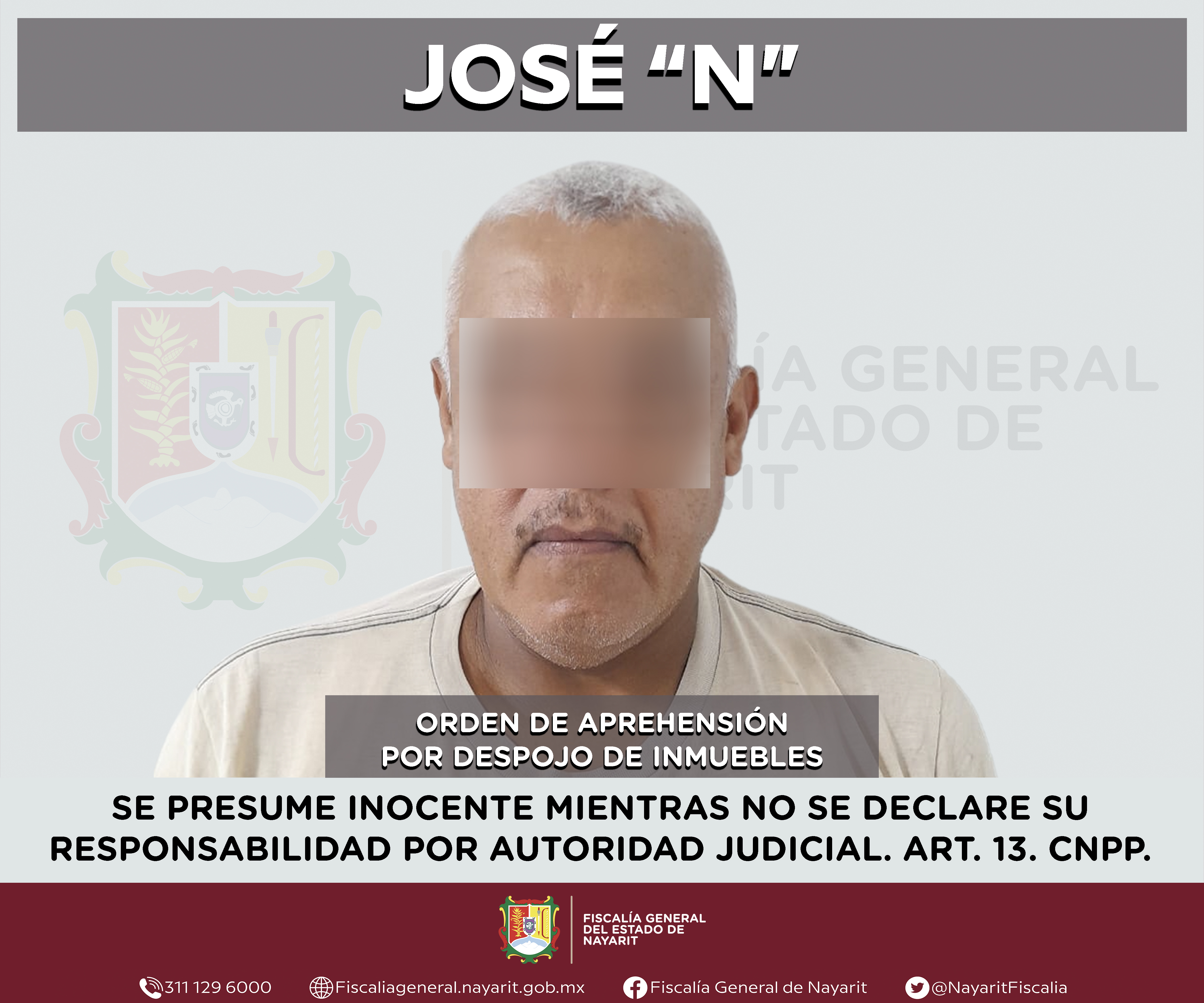 La Fiscalía General de Nayarit a través de la Agencia de Investigación Criminal ejecutó una orden de aprehensión en la localidad Otates y Cantarranas, municipio de Compostela contra José “N”, por su probable participación en hechos que para la...