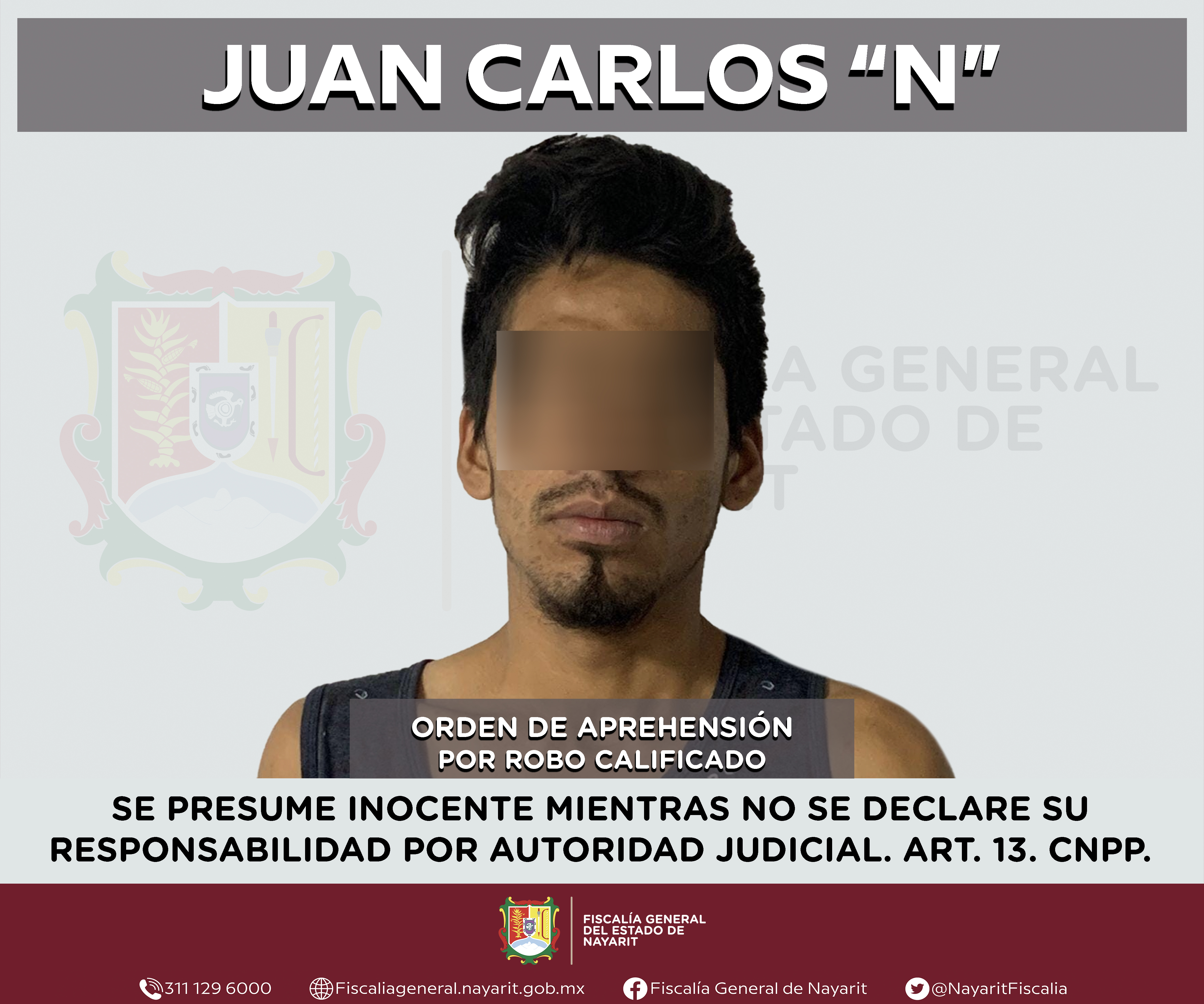 Elementos de la Agencia de Investigación Criminal de Nayarit ejecutaron una orden de aprehensión contra Juan Carlos “N”, por su presunta participación en hechos que según apreciación de la ley encuadran el delito de robo calificado, cometido en ...