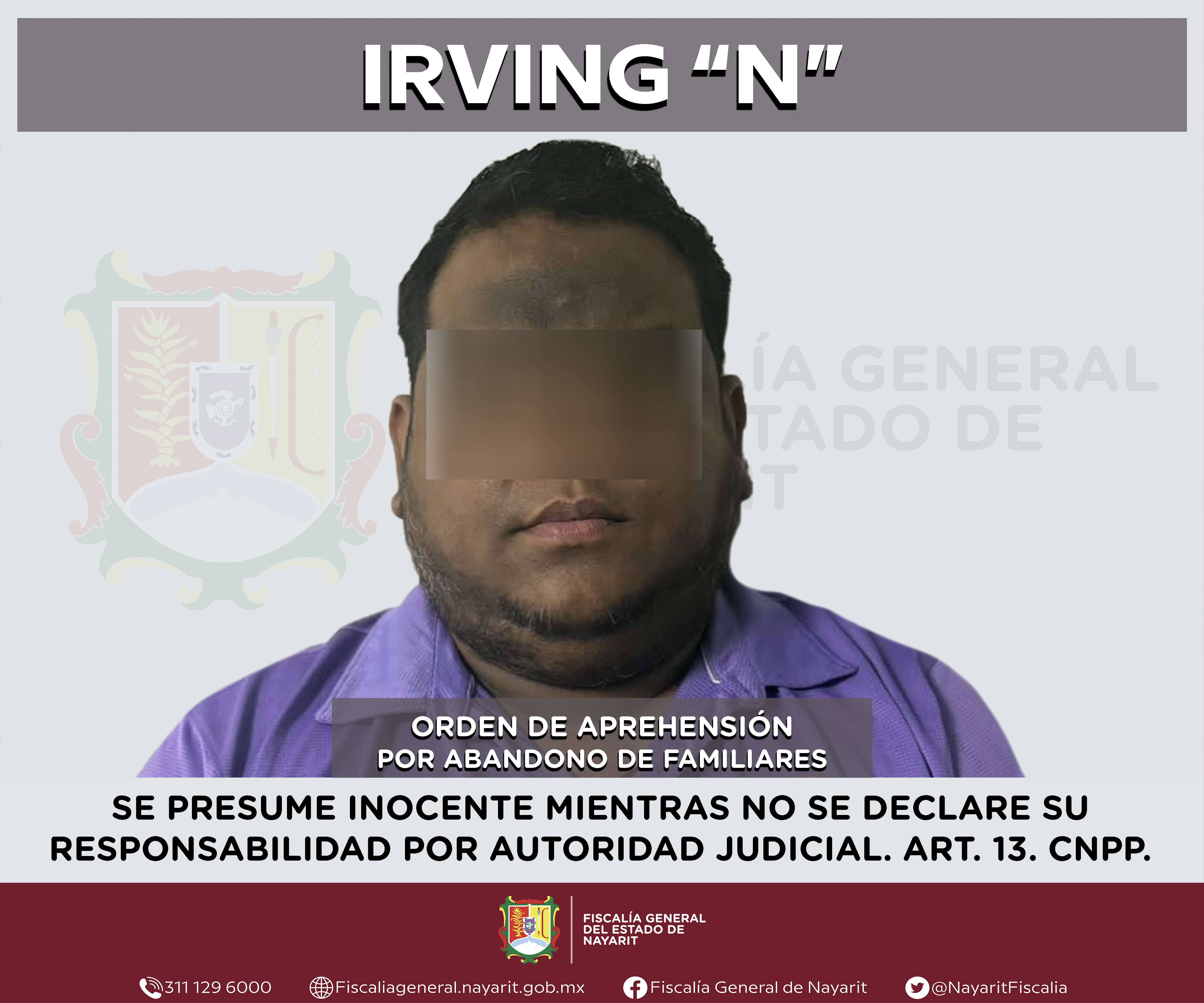 Elementos de la Agencia de Investigación Criminal de Nayarit ejecutaron una orden de aprehensión en el municipio de Compostela contra Irving “N”, por su presunta participación en hechos que según apreciación de la ley encuadran el delito de aban...