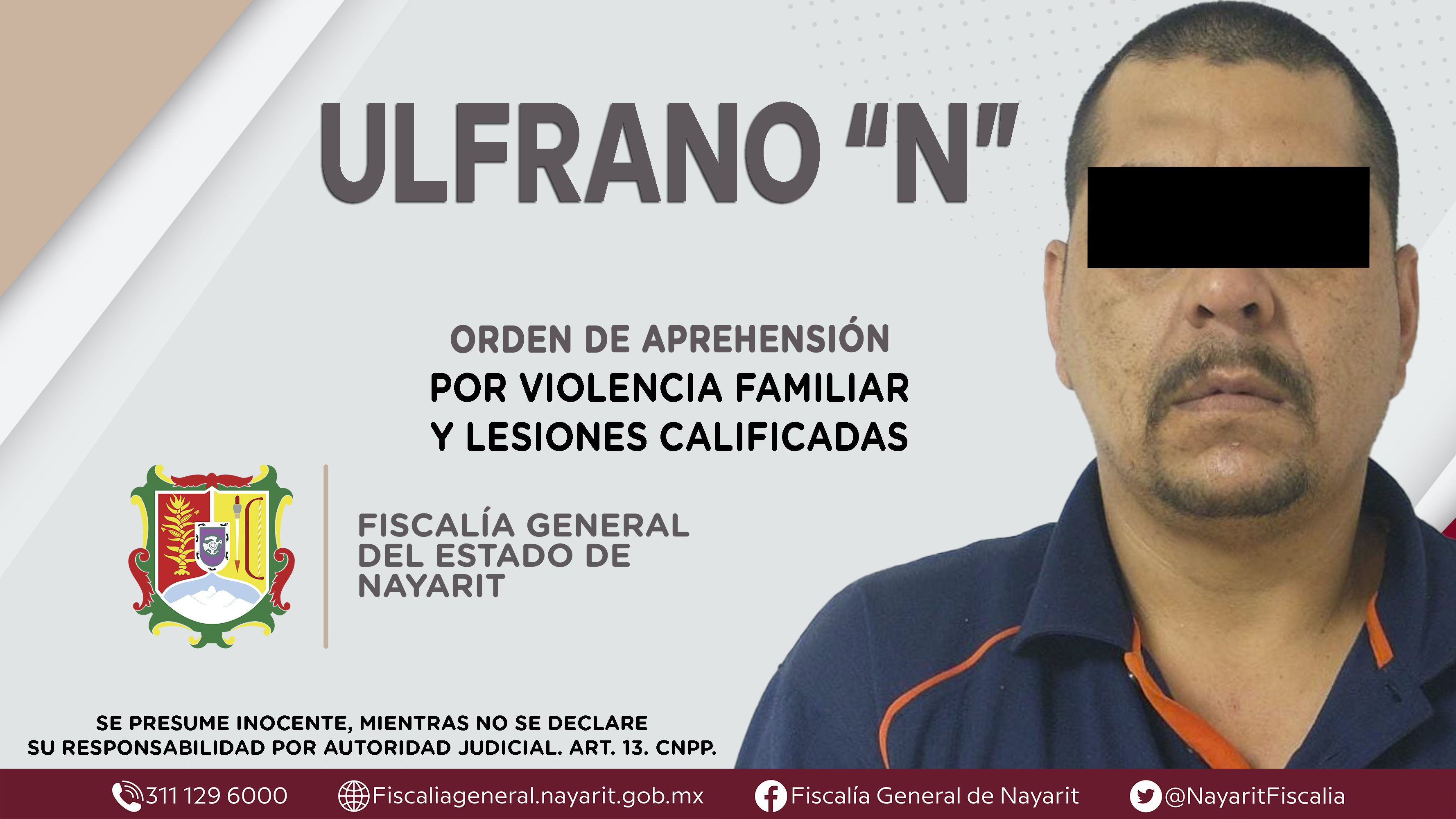 La Fiscalía General del Estado a través de la Agencia de Investigación Criminal dio cumplimiento a una orden de aprehensión en la capital nayarita contra Ulfrano “N”, por su presunta participación en hechos que según apreciación de la ley encu...