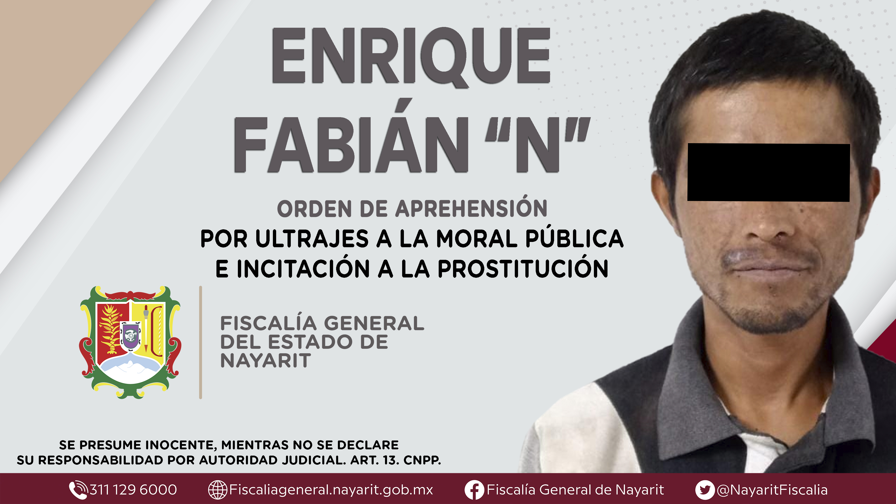 La Fiscalía General del Estado a través de la Agencia de Investigación Criminal dio cumplimiento a una orden de aprehensión en la capital nayarita contra Enrique Fabián “N”, por su presunta participación en hechos que según apreciación de la ...