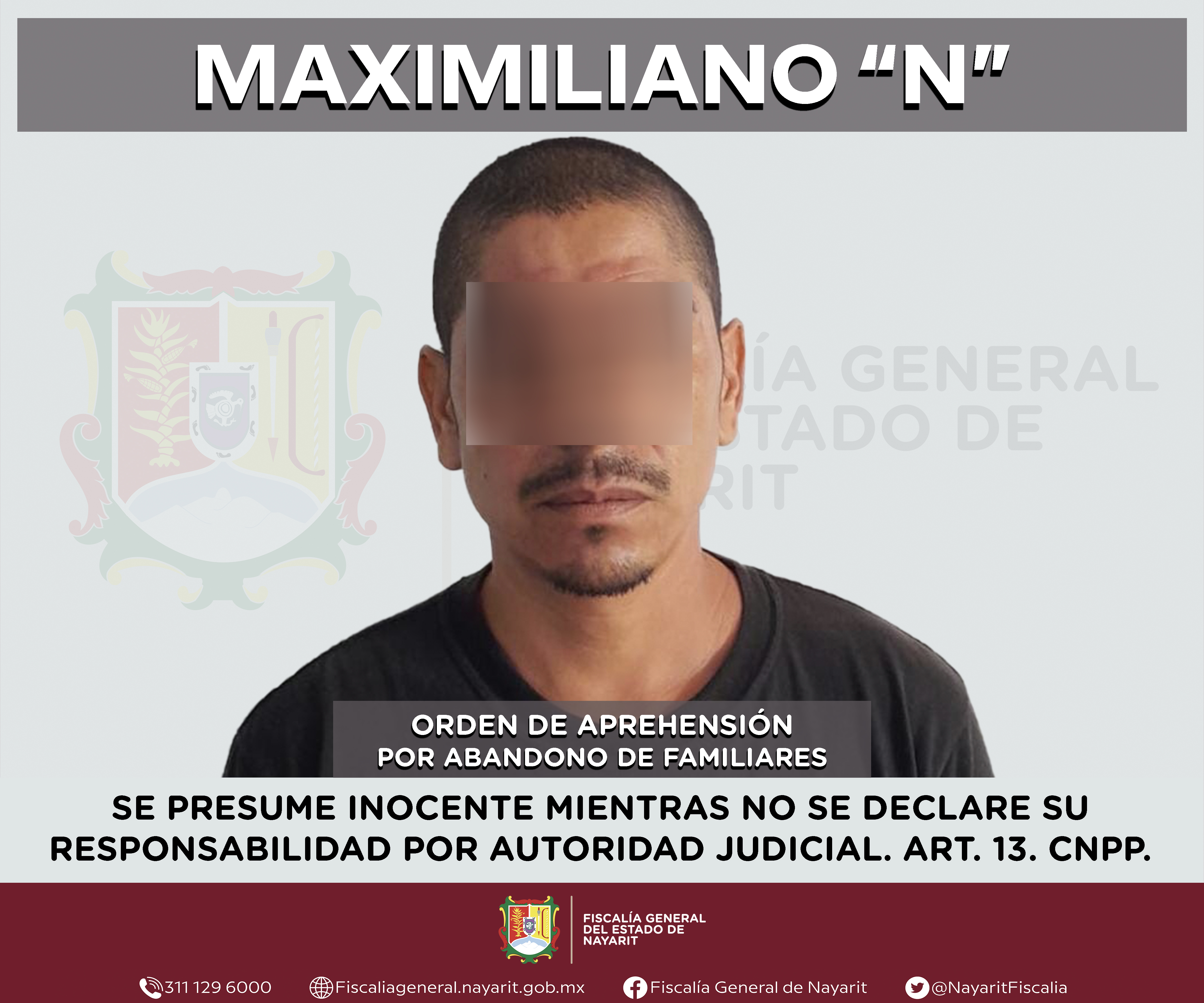 La Fiscalía General de Nayarit a través de la Agencia de Investigación Criminal ejecutó una orden de aprehensión en la ciudad de Tepic contra Maximiliano “N”, por su probable participación en hechos que para la ley configuran el delito de aband...