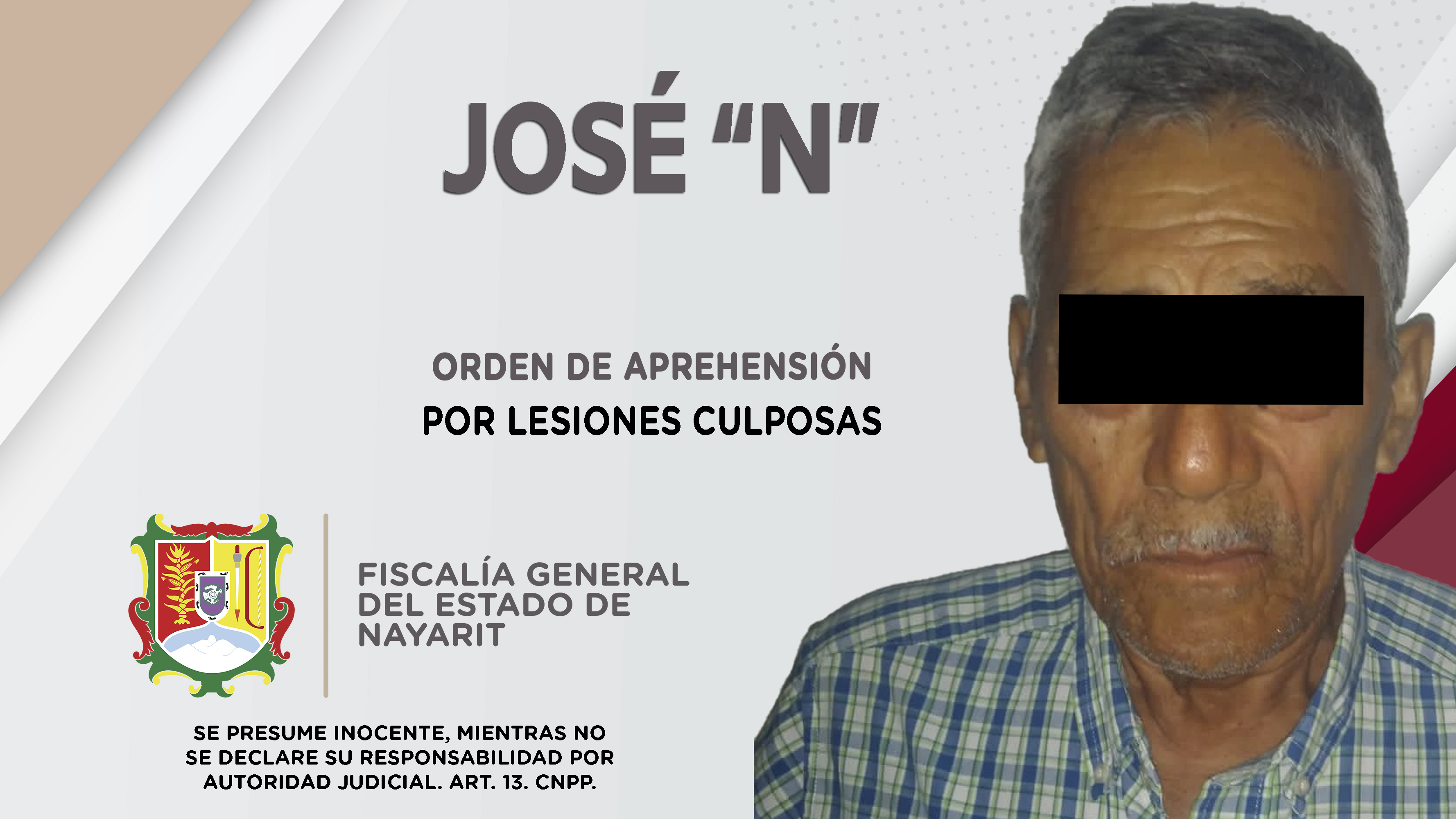 Elementos de la Agencia de Investigación Criminal cumplimentaron una orden de aprehensión en el municipio de Rosamorada contra José “N”, por su presuntiva responsabilidad penal en hechos que la ley califica como delito de lesiones culposas, ilíci...