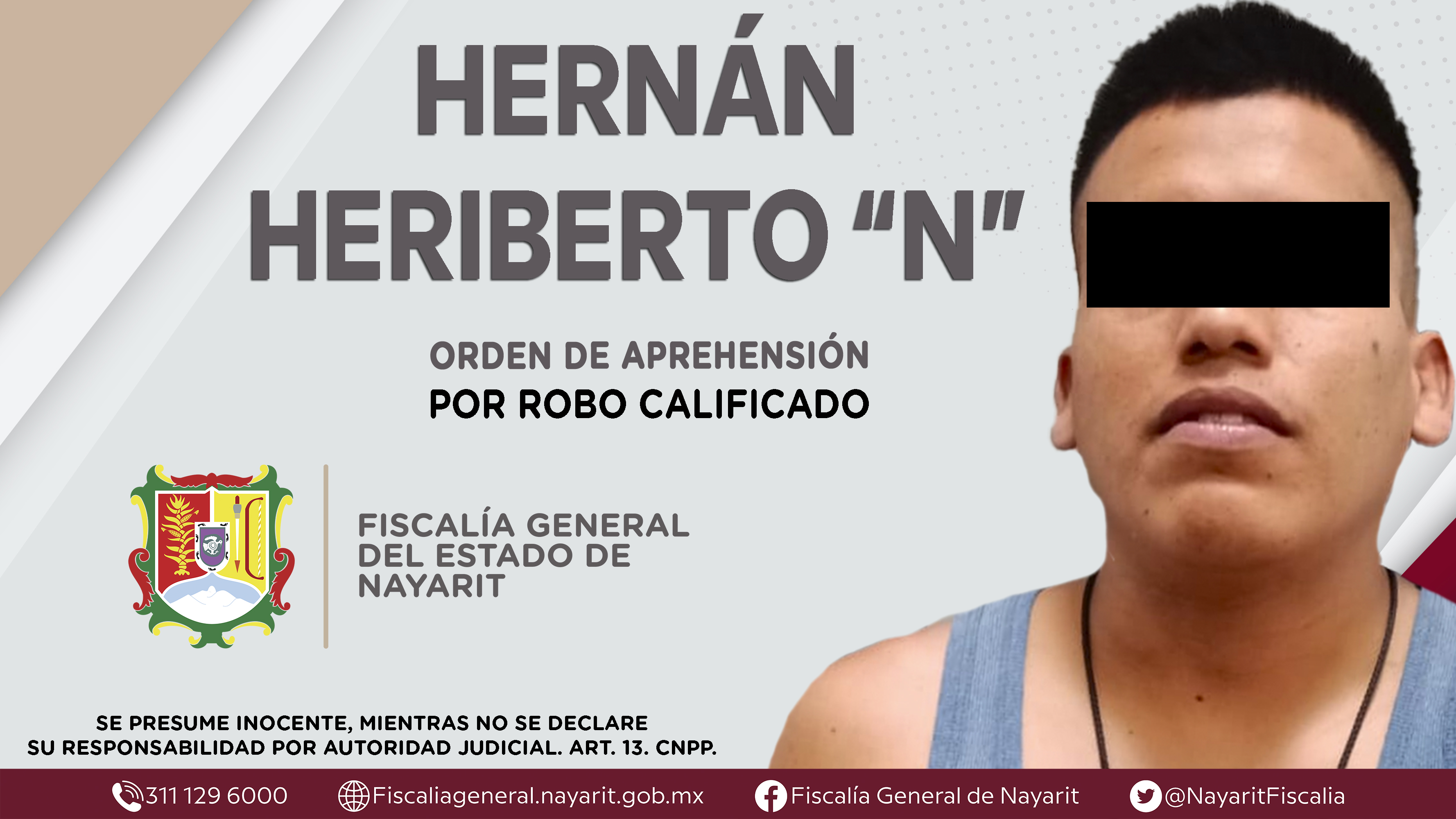 Elementos de la Agencia de Investigación Criminal de Nayarit ejecutaron una orden de aprehensión en la ciudad de Tepic contra Hernán Heriberto “N”, por su presunta participación en hechos que según apreciación de la ley encuadran el delito de r...