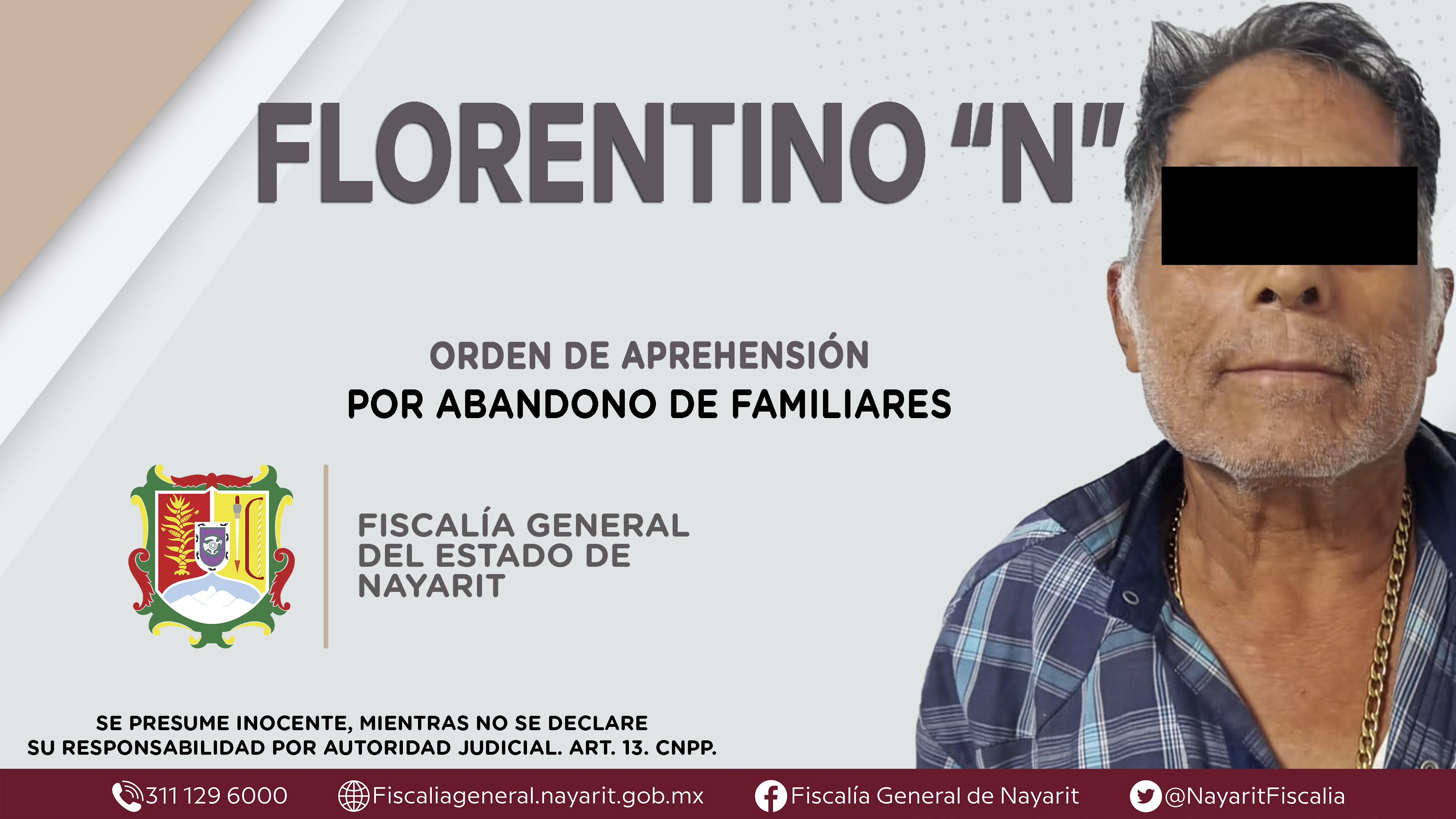 La Fiscalía General del Estado a través de la Agencia de Investigación Criminal dio cumplimiento a una orden de aprehensión en la ciudad de Tepic contra Florentino “N”, por su presunta participación en hechos que según valoración de la ley con...