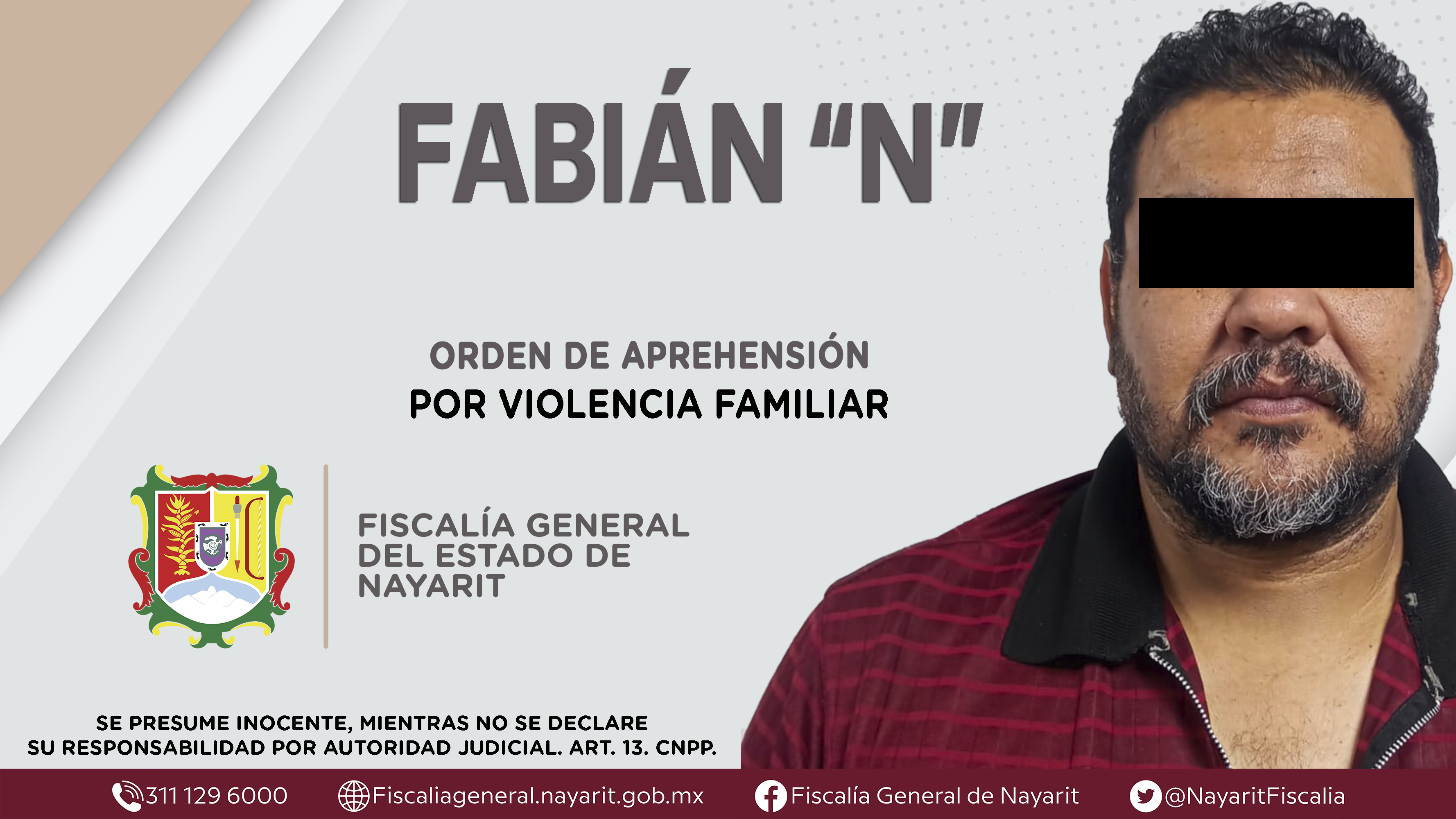 La Fiscalía General del Estado a través de la Agencia de Investigación Criminal dio cumplimiento a una orden de aprehensión en la ciudad de Tepic contra Fabián “N”, por su presunta participación en hechos que según valoración de la ley config...