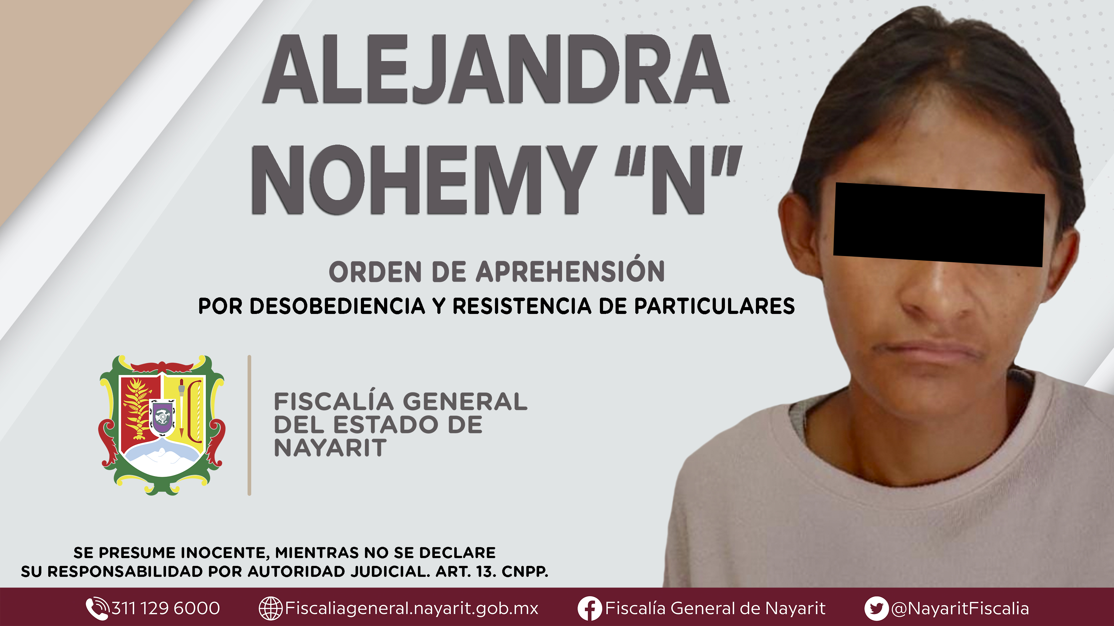 La Fiscalía General del Estado a través de la Agencia de Investigación Criminal dio cumplimiento a una orden de aprehensión en la ciudad de Tepic contra Alejandra Nohemy “N”, por su presunta participación en hechos que según valoración de la l...