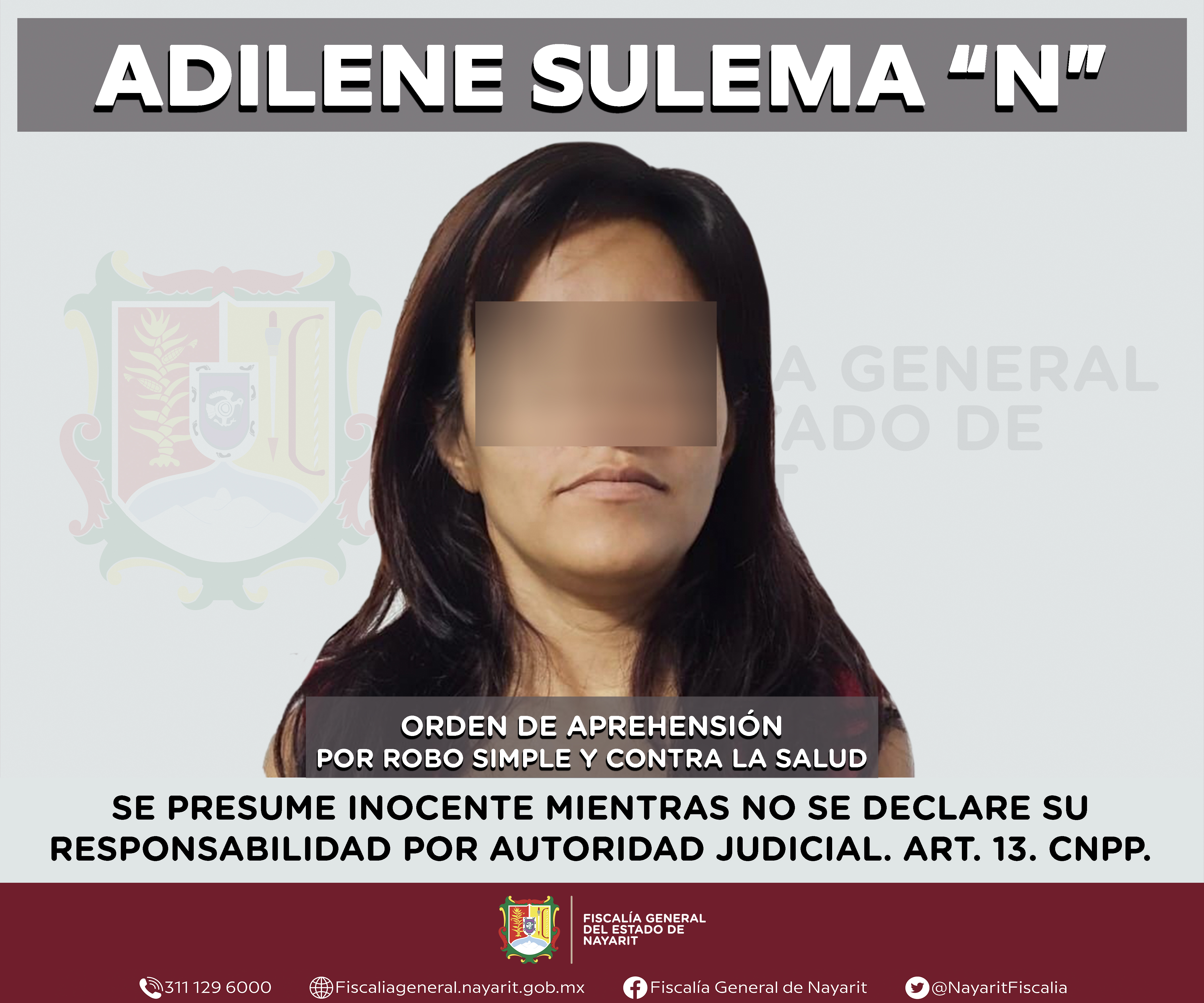 La Fiscalía General de Nayarit a través de la Agencia de Investigación Criminal ejecutó dos órdenes de aprehensión en la ciudad de Tepic contra Adilene Sulema “N”, la primera por su probable participación en hechos que para la ley configuran e...