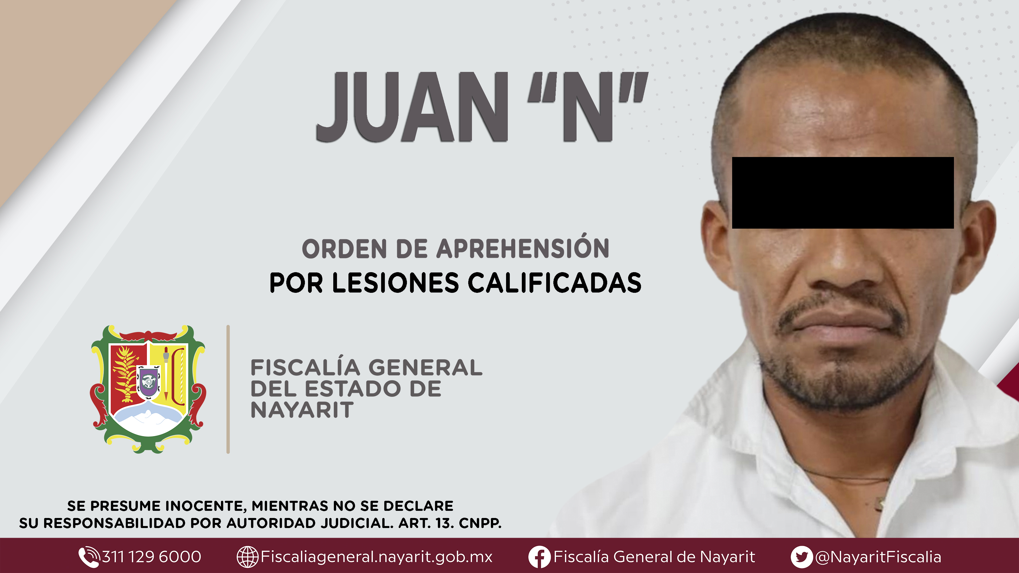 Elementos de la Agencia de Investigación Criminal de Nayarit ejecutaron una orden de aprehensión en la ciudad de Tepic contra Juan “N”, por su presunta participación en hechos que según apreciación de la ley encuadran el delito de lesiones calif...