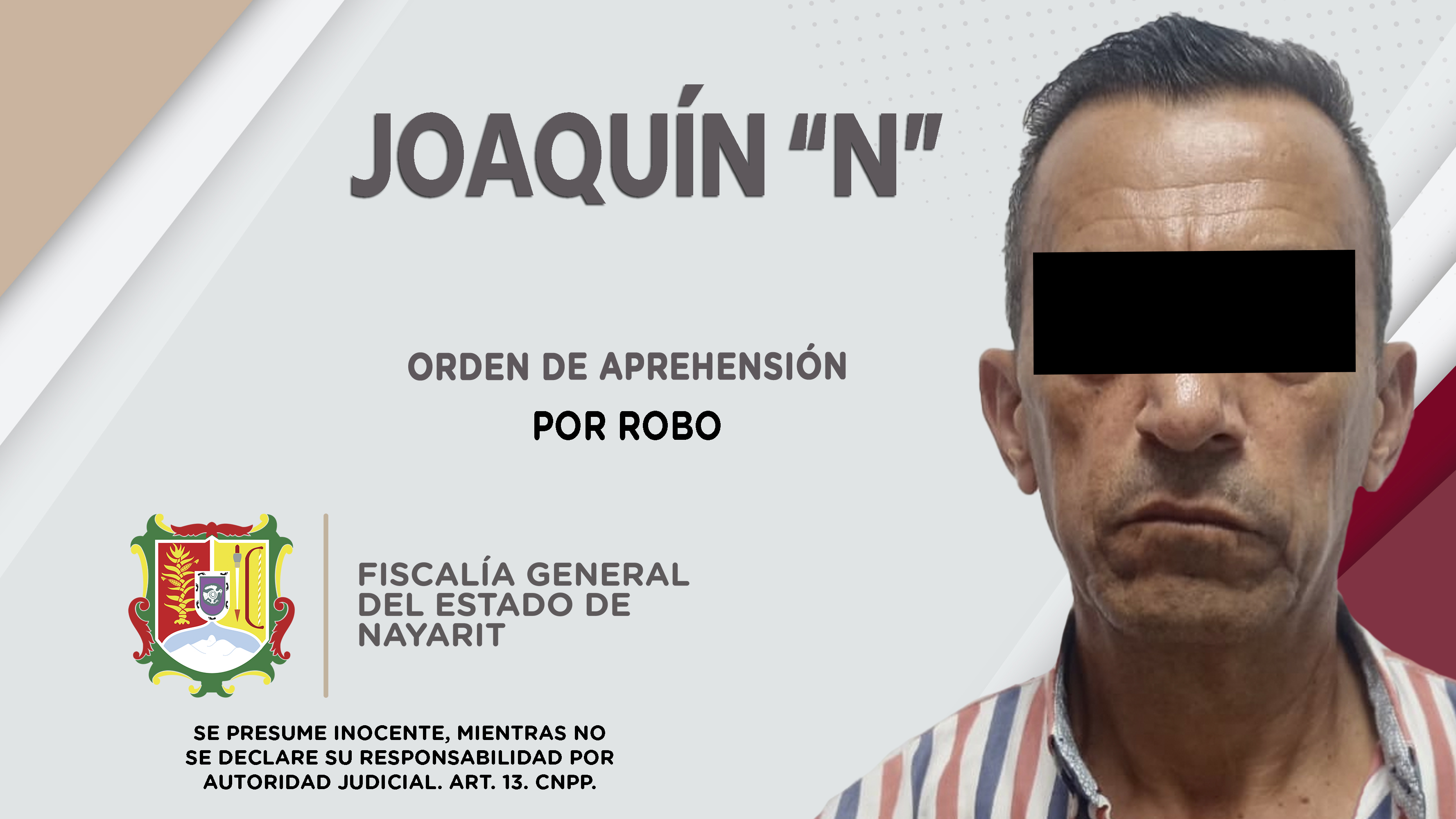 Elementos de la Agencia de Investigación Criminal cumplimentaron una orden de aprehensión en la ciudad de Tepic contra Joaquín “N”, por su presuntiva responsabilidad penal en hechos que la ley califica como delito de robo, ilícito cometido en per...