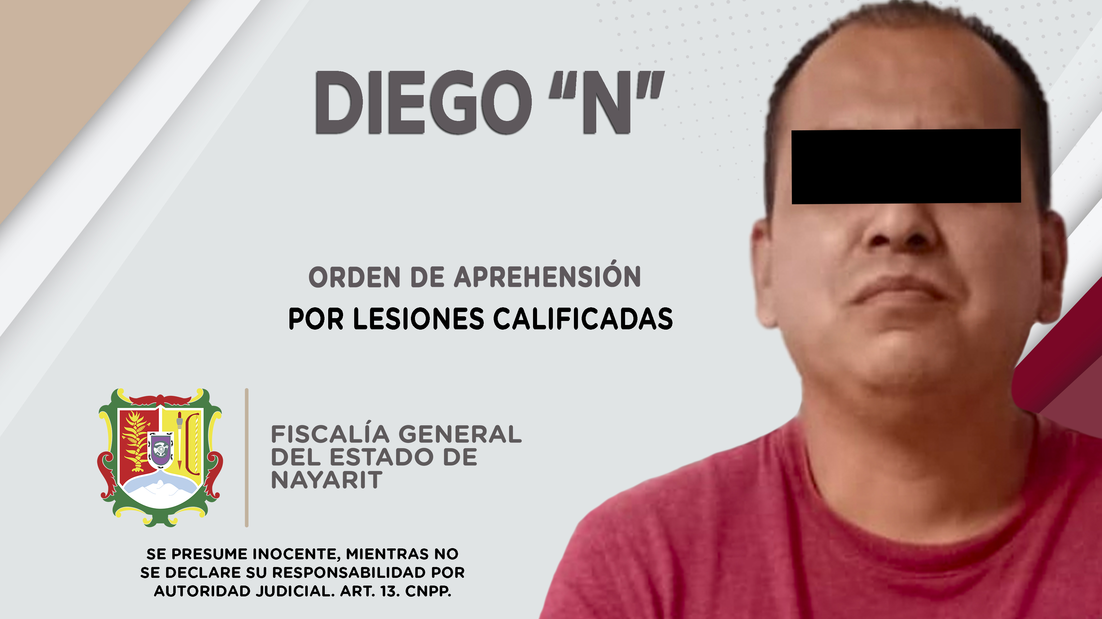 Elementos de la Agencia de Investigación Criminal cumplimentaron una orden de aprehensión en la ciudad de Tepic contra Diego “N”, por su presuntiva responsabilidad penal en hechos que la ley califica como delito de lesiones calificadas, ilícito co...