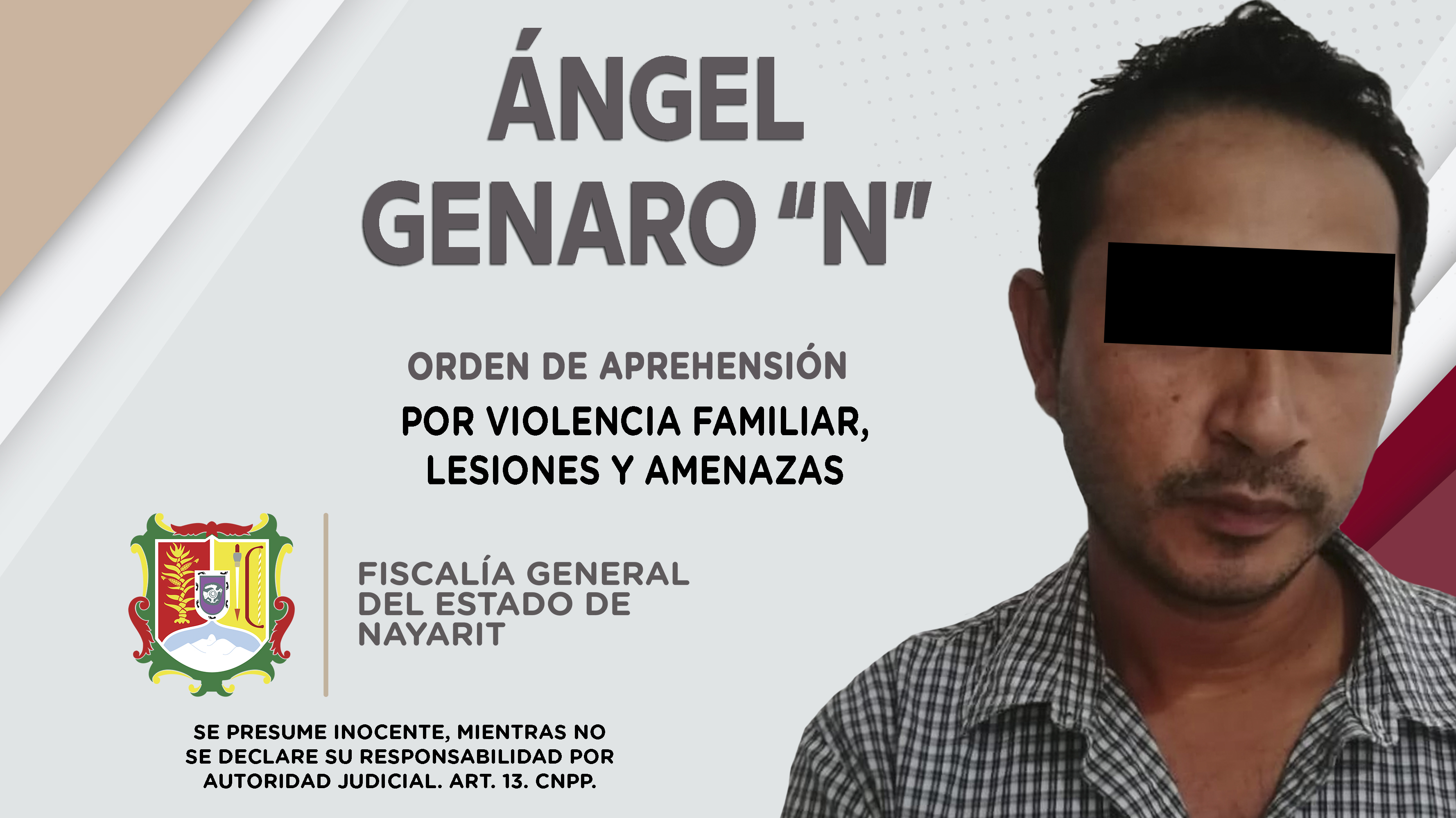Elementos de la Agencia de Investigación Criminal cumplimentaron una orden de aprehensión en el municipio de Santiago Ixcuintla contra Ángel Genaro “N”, por su presuntiva responsabilidad penal en hechos que la ley califica como delitos de violenci...