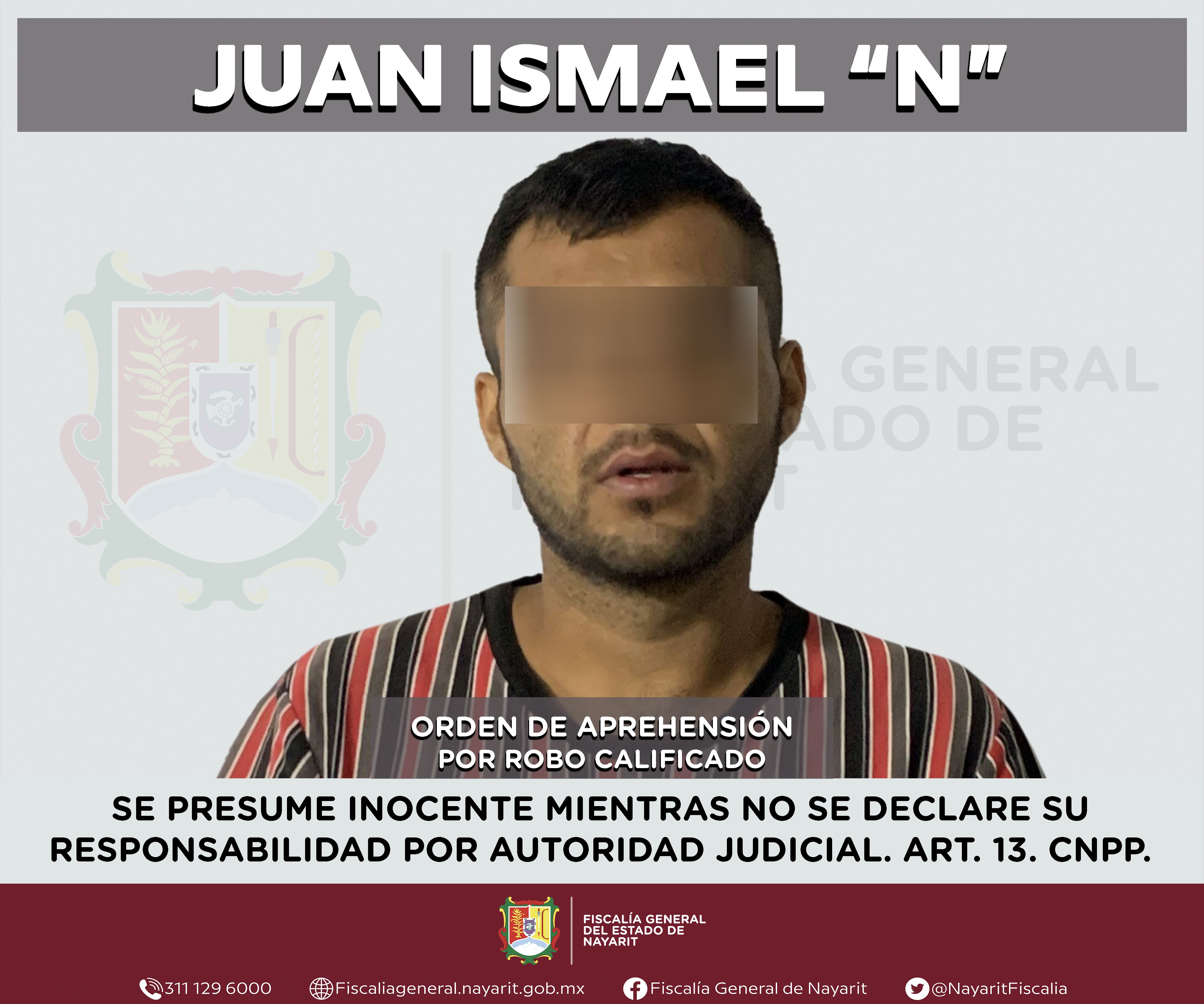 La Fiscalía General de Nayarit a través de la Agencia de Investigación Criminal ejecutó una orden de aprehensión en la capital nayarita contra Juan Ismael “N”, por su probable participación en hechos que para la ley configuran el delito de robo...