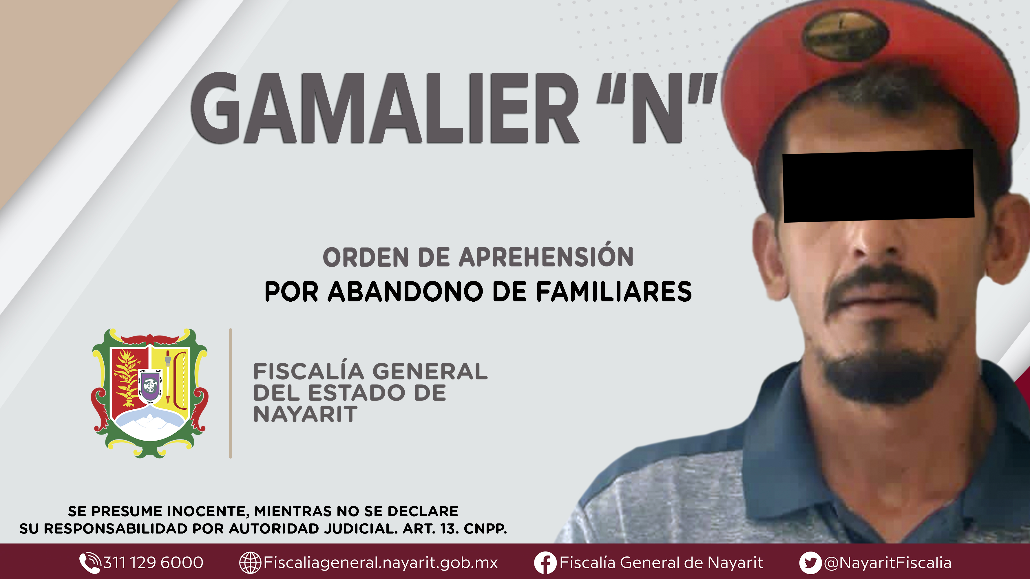 Elementos de la Agencia de Investigación Criminal de Nayarit ejecutaron una orden de aprehensión en el municipio de Tuxpan contra Gamalier “N”, por su presunta participación en hechos que según apreciación de la ley encuadran el delito de abando...