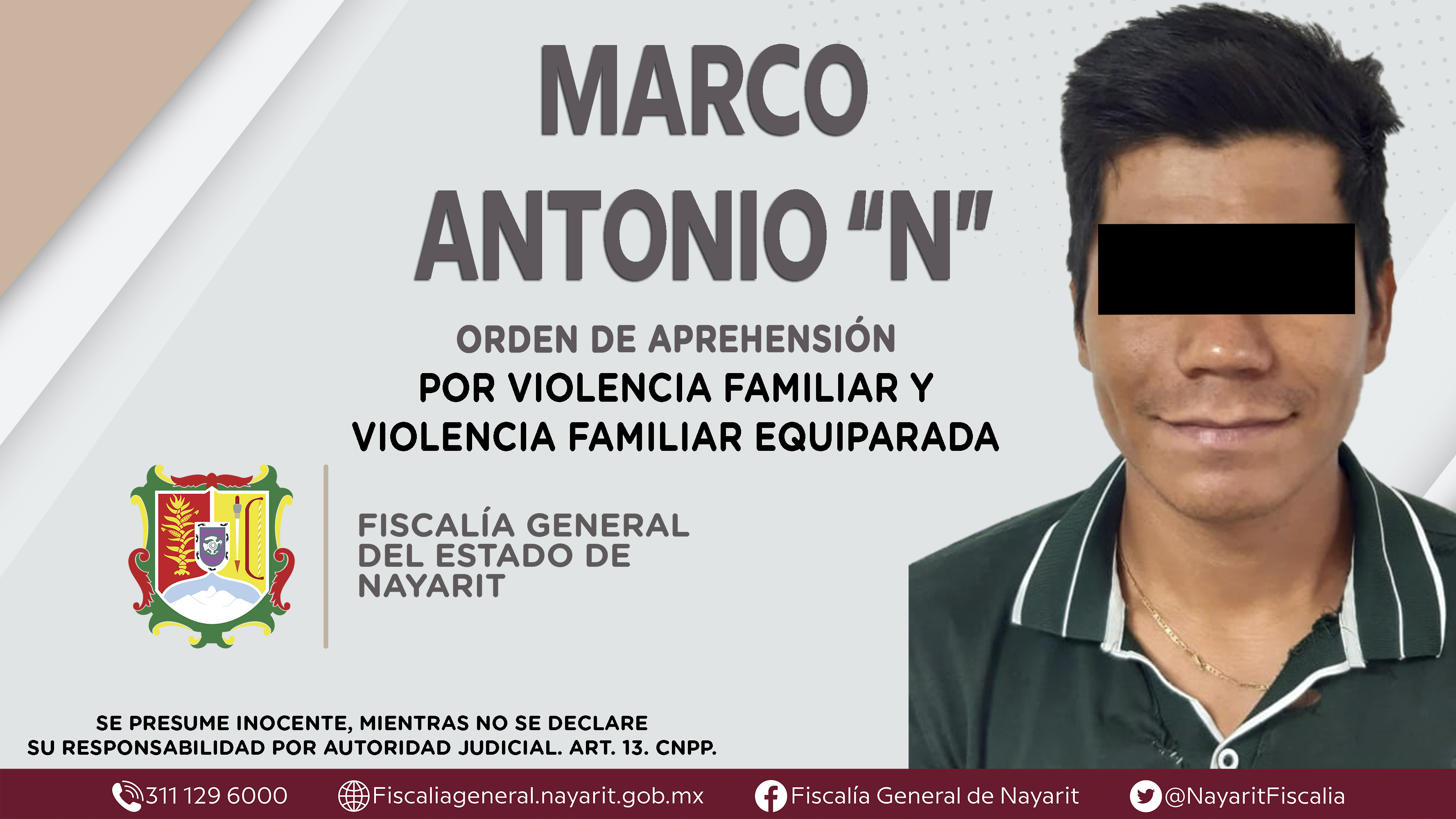 La Fiscalía General del Estado a través de la Agencia de Investigación Criminal dio cumplimiento a dos órdenes de aprehensión en la ciudad de Tepic contra Marco Antonio “N”, la primera por su presunta participación en hechos que según valoraci...
