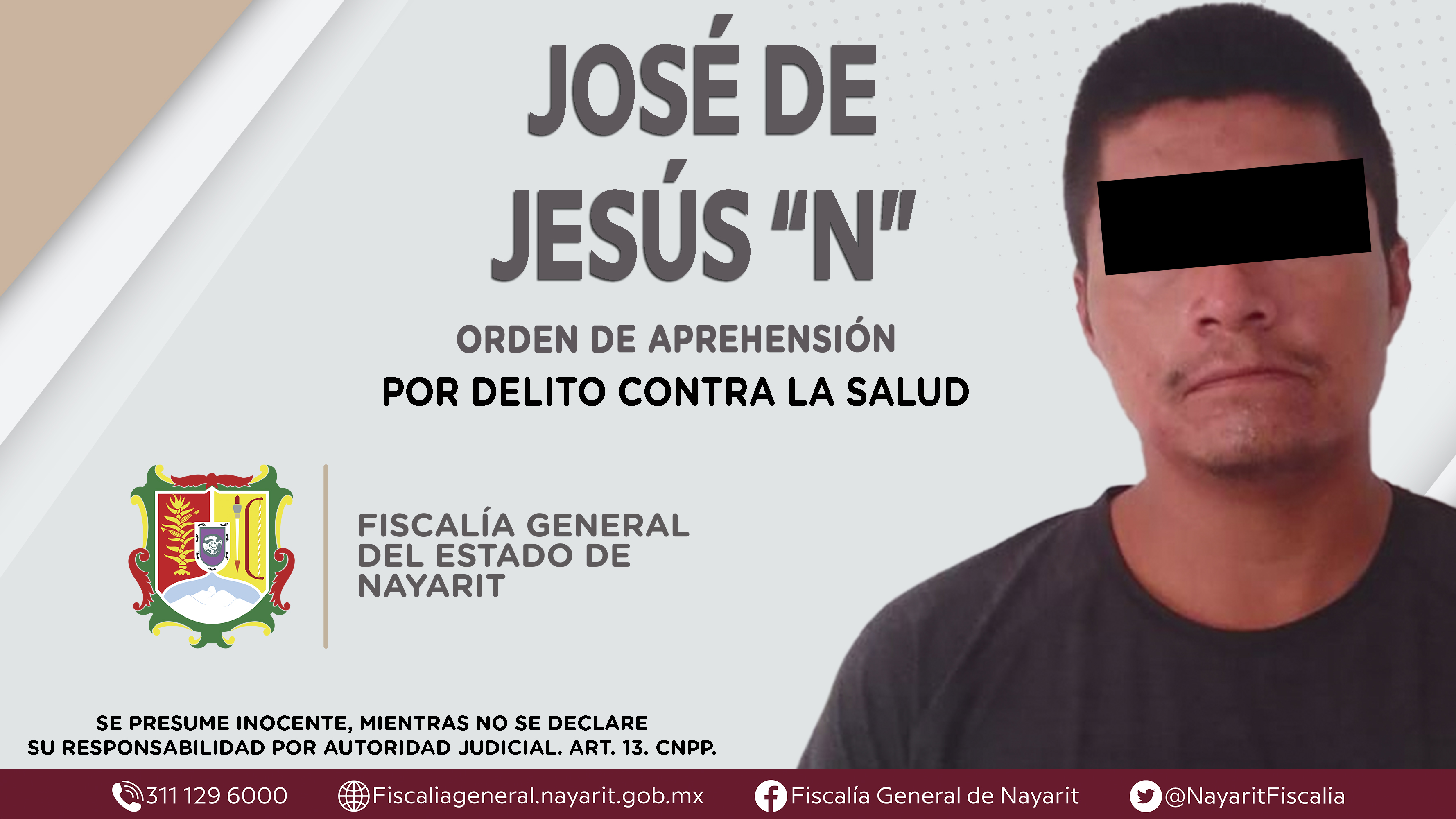 La Fiscalía General del Estado a través de la Agencia de Investigación Criminal dio cumplimiento a una orden de aprehensión en el municipio de Ruiz contra José de Jesús “N”, por su presunta participación en hechos que según valoración de la ...