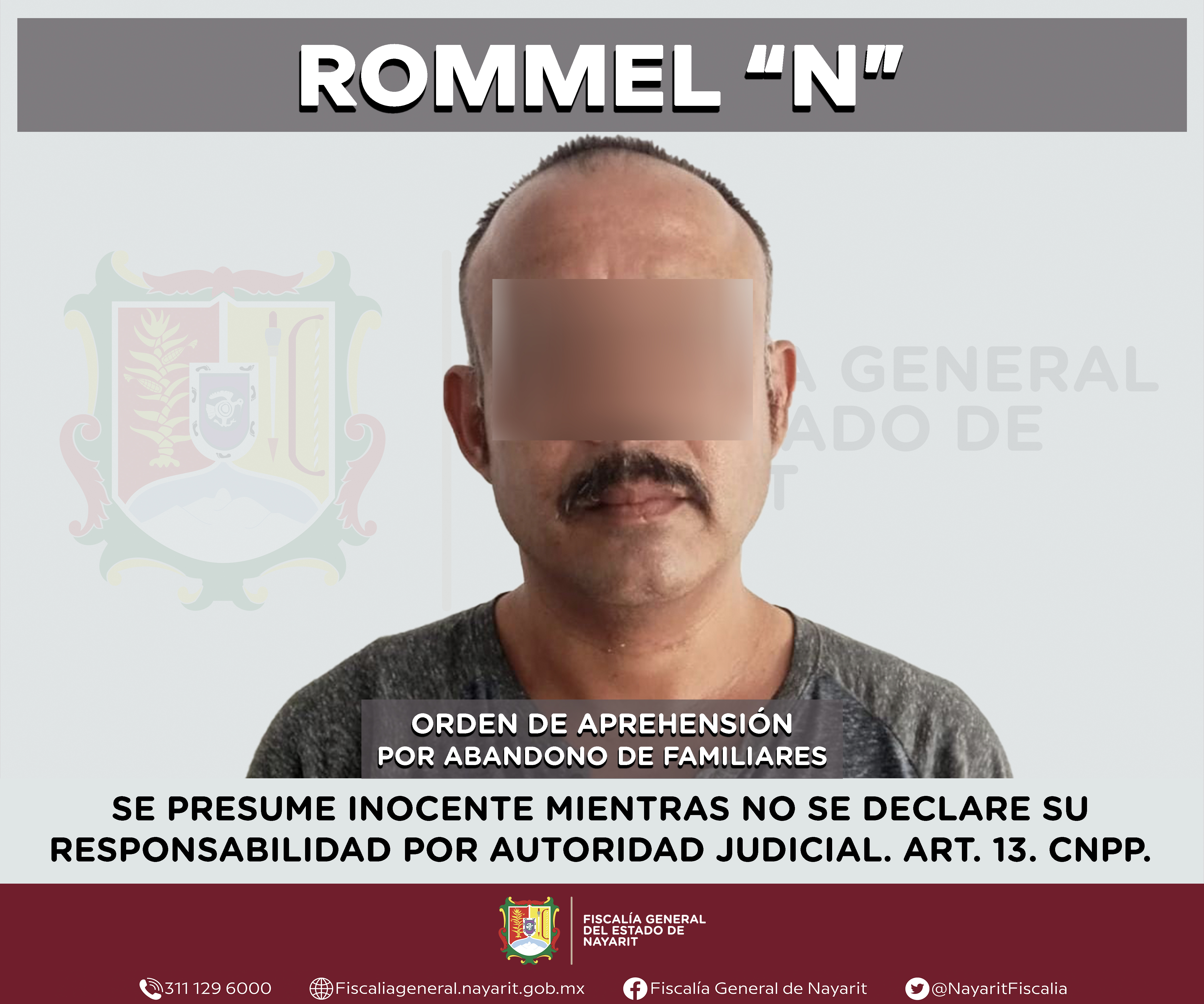La Fiscalía General de Nayarit a través de la Agencia de Investigación Criminal ejecutó una orden de aprehensión en la ciudad de Tepic contra Rommel “N”, por su probable participación en hechos que para la ley configuran el delito de abandono d...