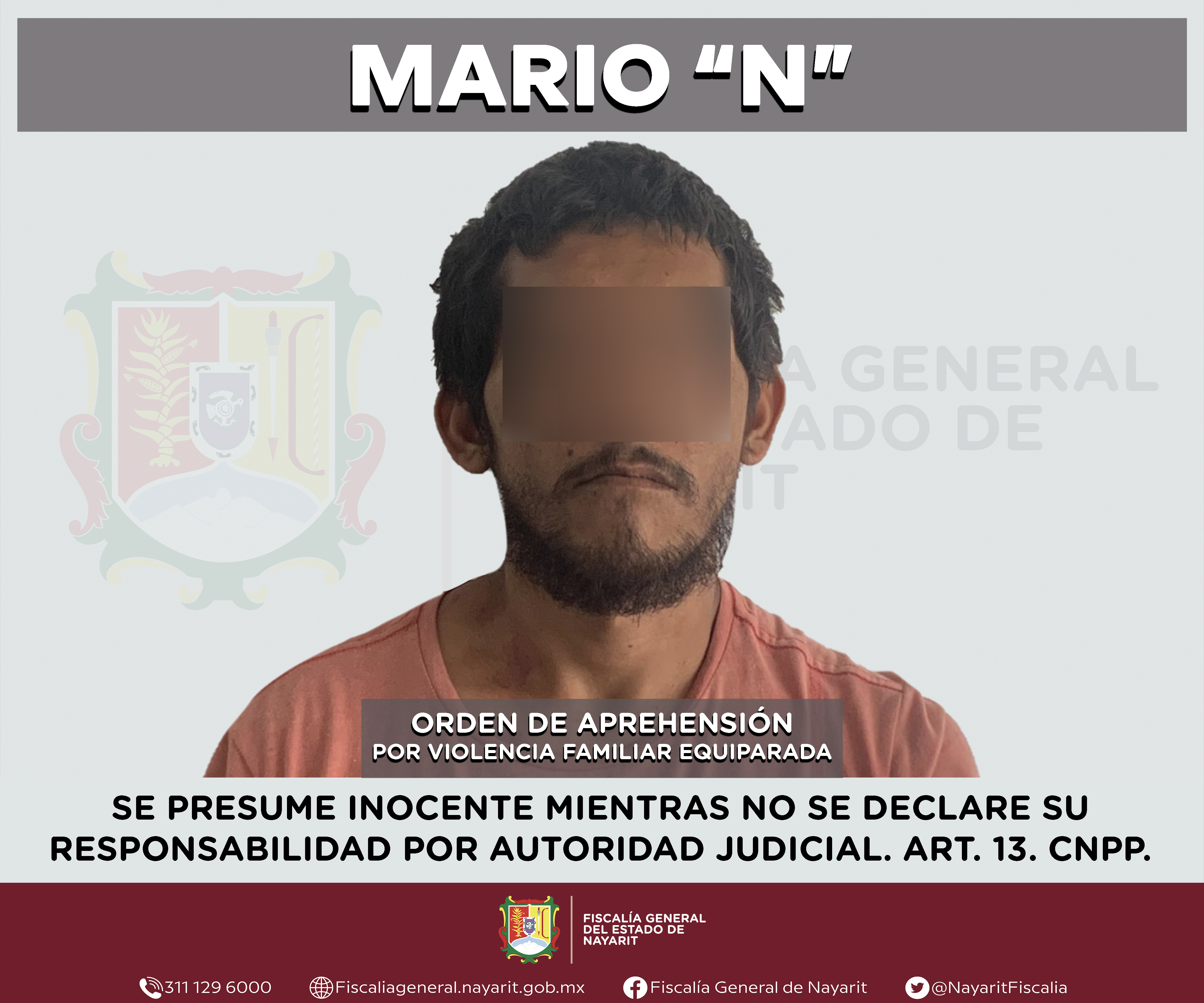 La Fiscalía General de Nayarit a través de la Agencia de Investigación Criminal ejecutó una orden de aprehensión en la ciudad de Tepic contra Mario “N”, por su probable participación en hechos que para la ley configuran el delito de violencia f...