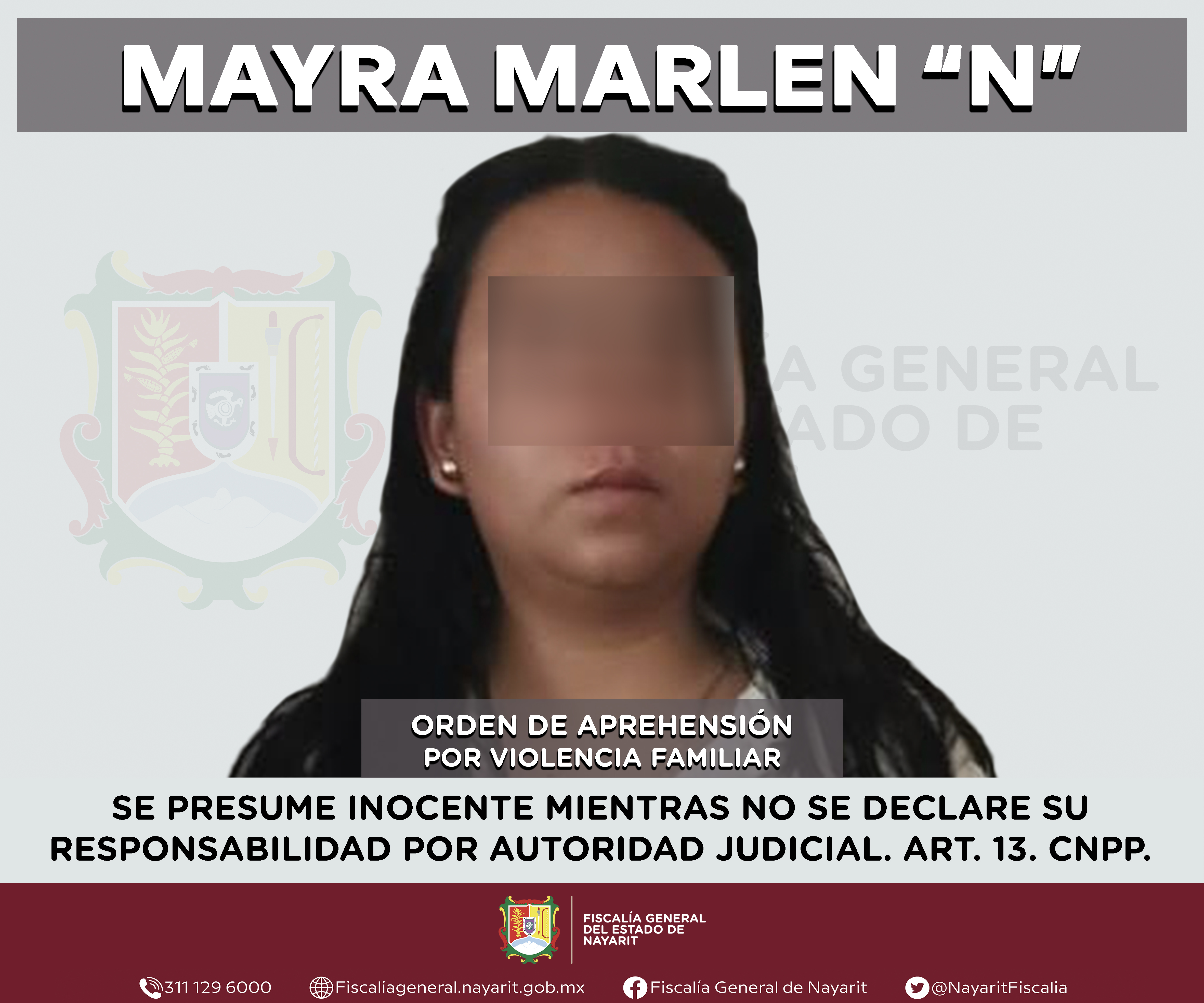 Elementos de la Agencia de Investigación Criminal de Nayarit ejecutaron una orden de aprehensión en el municipio de San Blas contra Mayra Marlen “N”, por su presunta participación en hechos que según apreciación de la ley encuadran el delito de ...