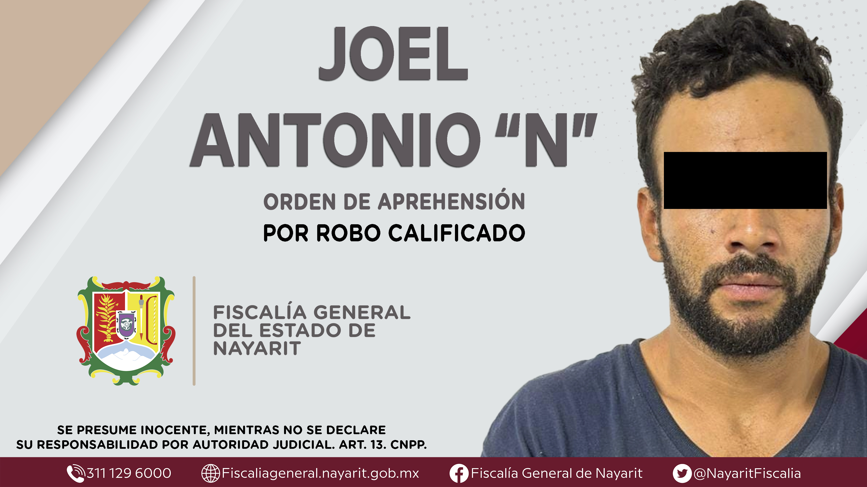 La Fiscalía General del Estado a través de la Agencia de Investigación Criminal dio cumplimiento a una orden de aprehensión en la ciudad de Tepic contra Joel Antonio “N”, por su presunta participación en hechos que según valoración de la ley c...