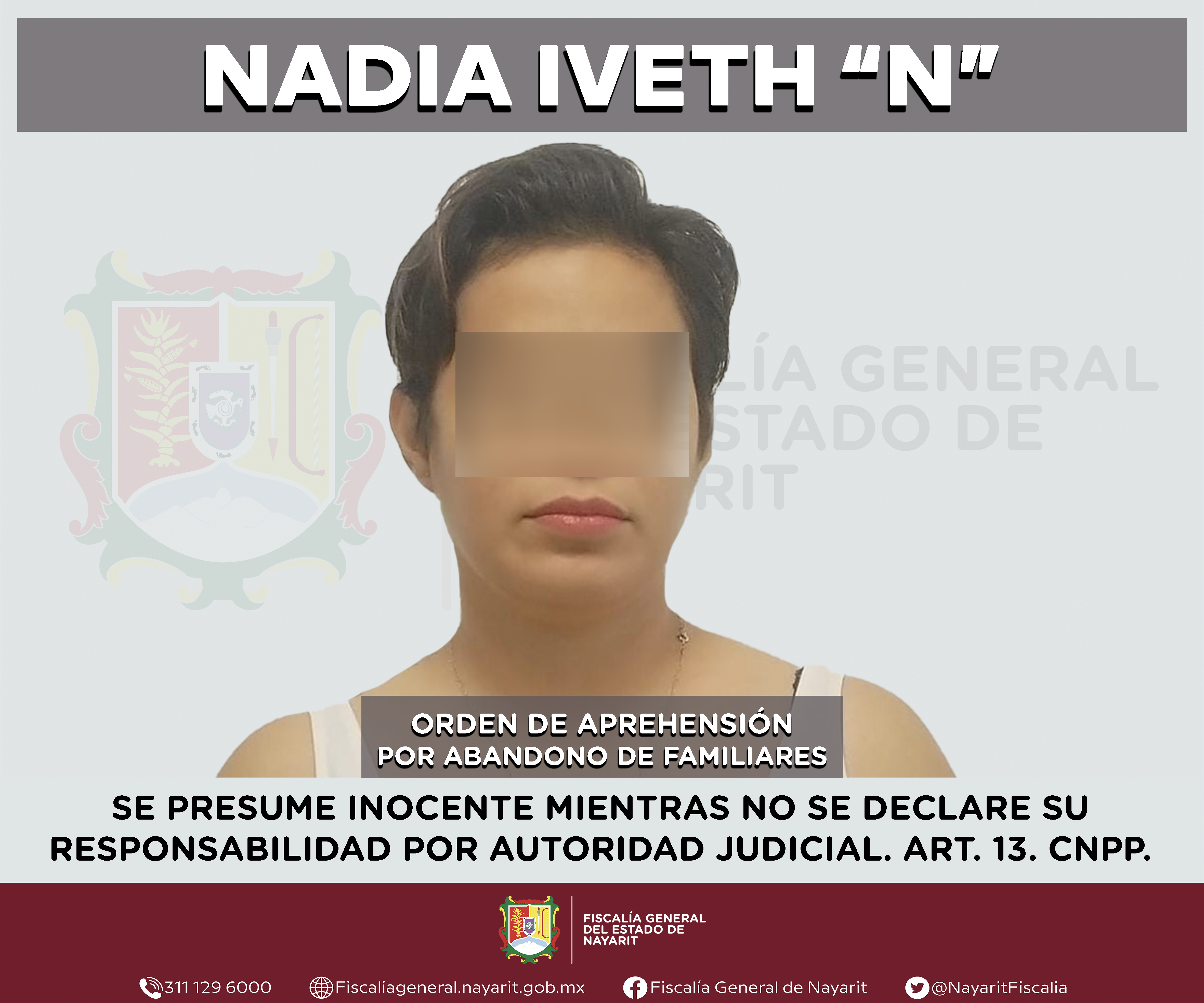 Elementos de la Agencia de Investigación Criminal de Nayarit ejecutaron una orden de aprehensión en el municipio de Bahía de Banderas contra Nadia Iveth “N”, por su presunta participación en hechos que según apreciación de la ley encuadran el d...