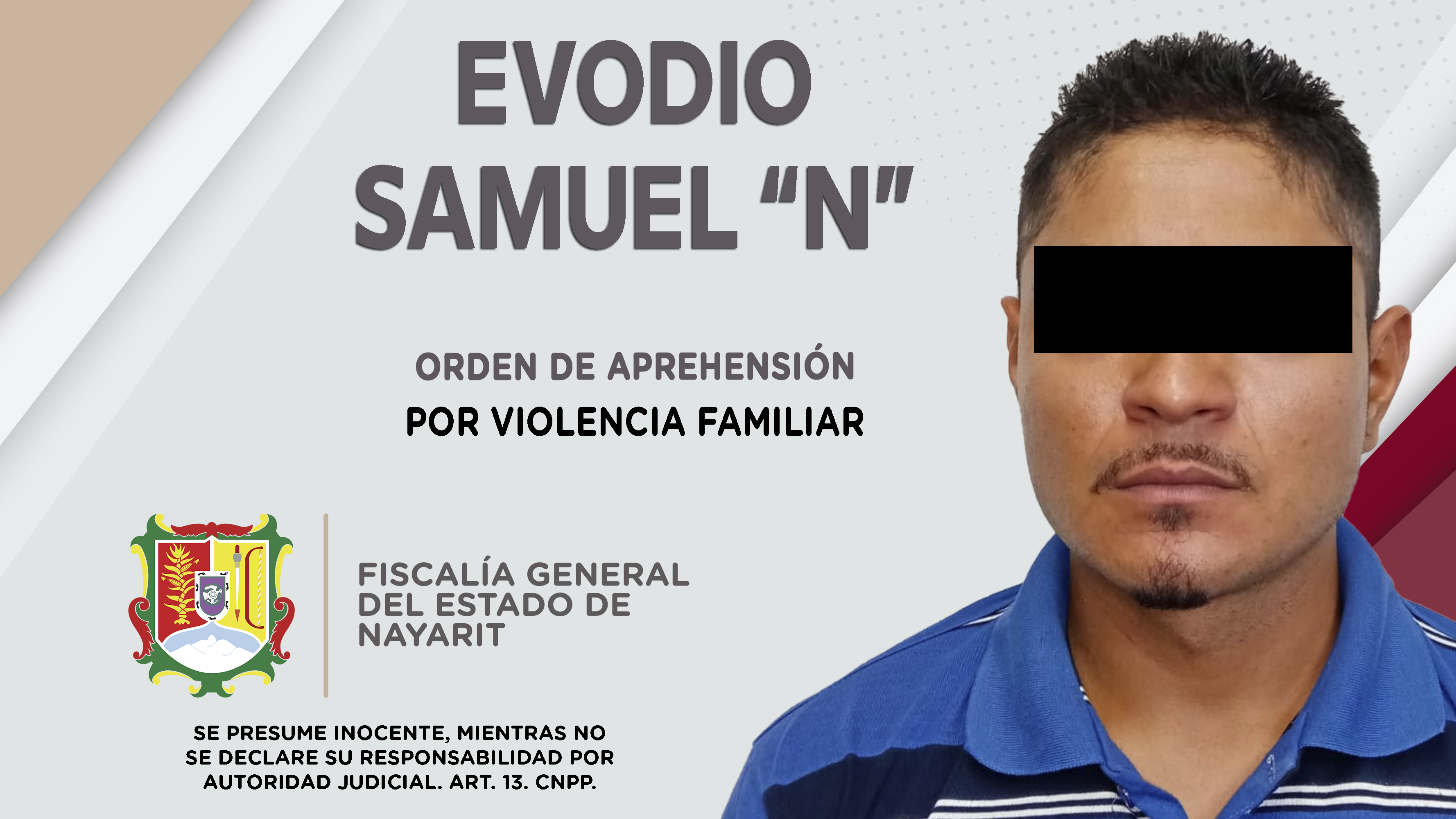 Fiscalía General de Nayarit a través de la Agencia de Investigación Criminal, ejecutó una orden de aprehensión en la localidad Pantanal, municipio de Xalisco, contra Evodio Samuel “N”, por su probable participación en hechos que la ley califica...