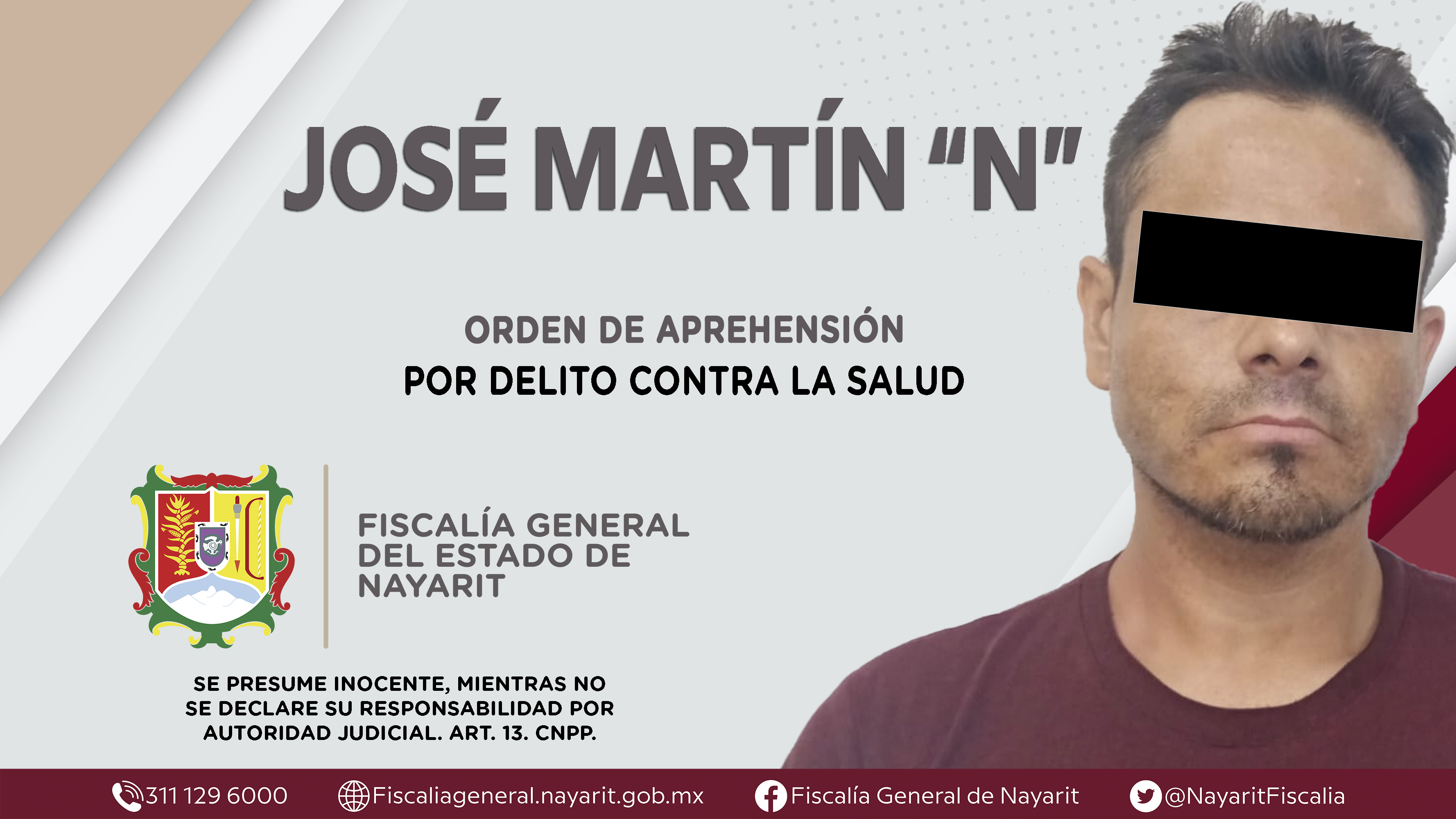 Fiscalía General de Nayarit a través de la Agencia de Investigación Criminal, ejecutó una orden de aprehensión en la ciudad de Tepic contra José Martín “N”, por su probable participación en hechos que la ley califica como delito contra la sa...