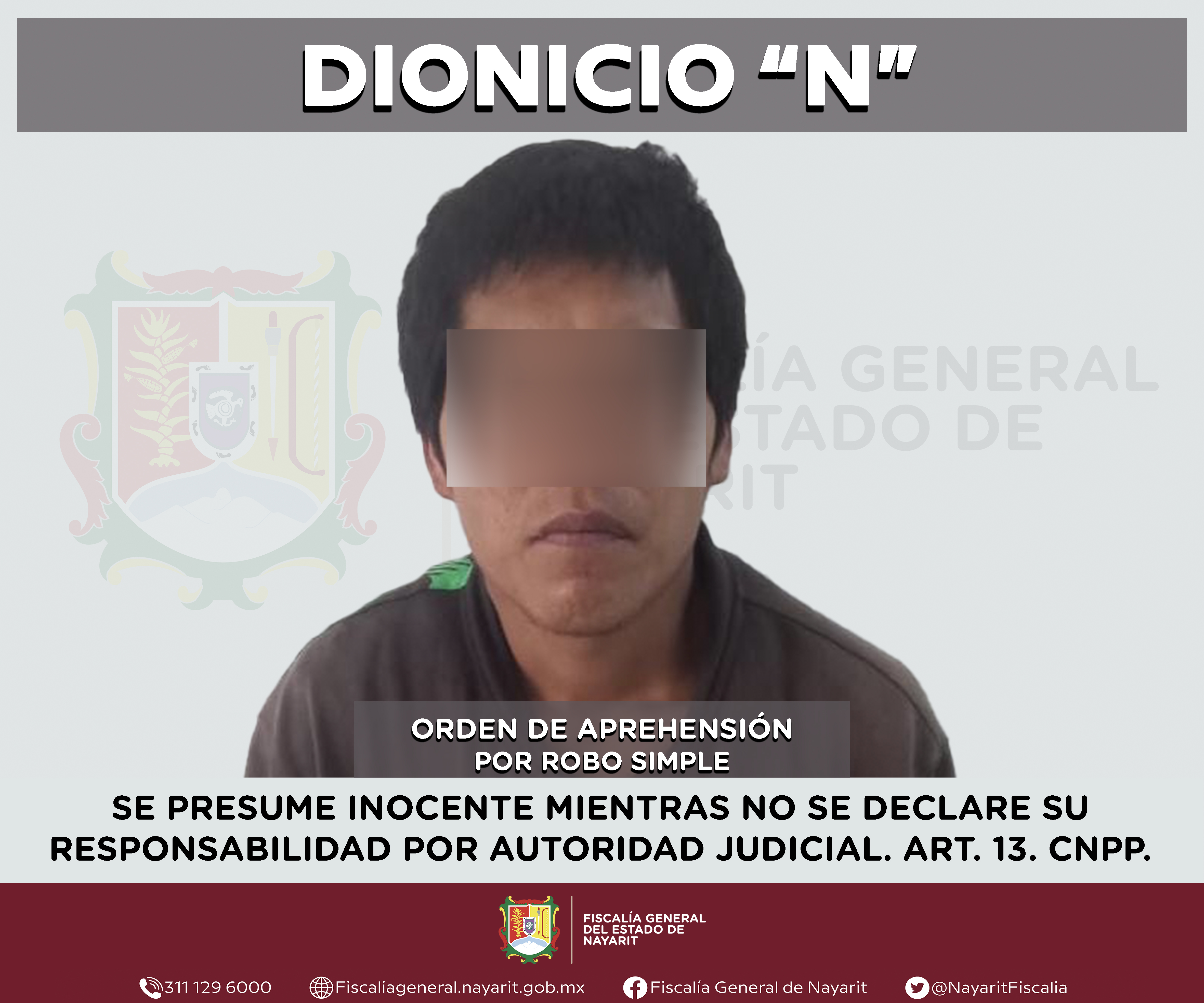 Elementos de la Agencia de Investigación Criminal de Nayarit ejecutaron una orden de aprehensión en la capital nayarita contra Dionicio “N”, por su presunta participación en hechos que según apreciación de la ley encuadran el delito de robo simp...