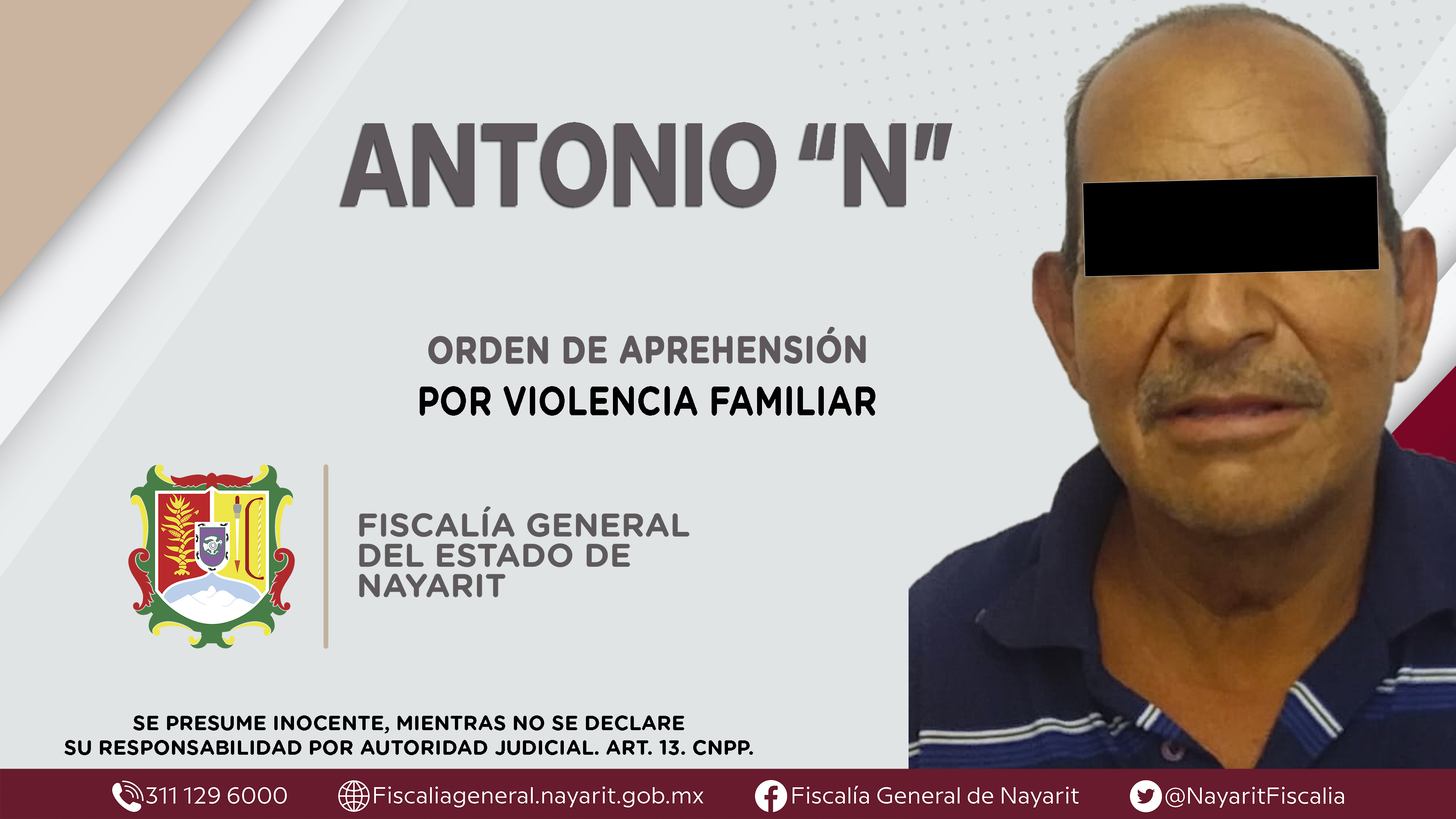 En la capital nayarita, elementos de la Agencia de Investigación Criminal dieron cumplimiento a una orden de aprehensión que se obsequió contra Antonio “N”, por su probable participación en hechos que la ley califica como delito de violencia fami...