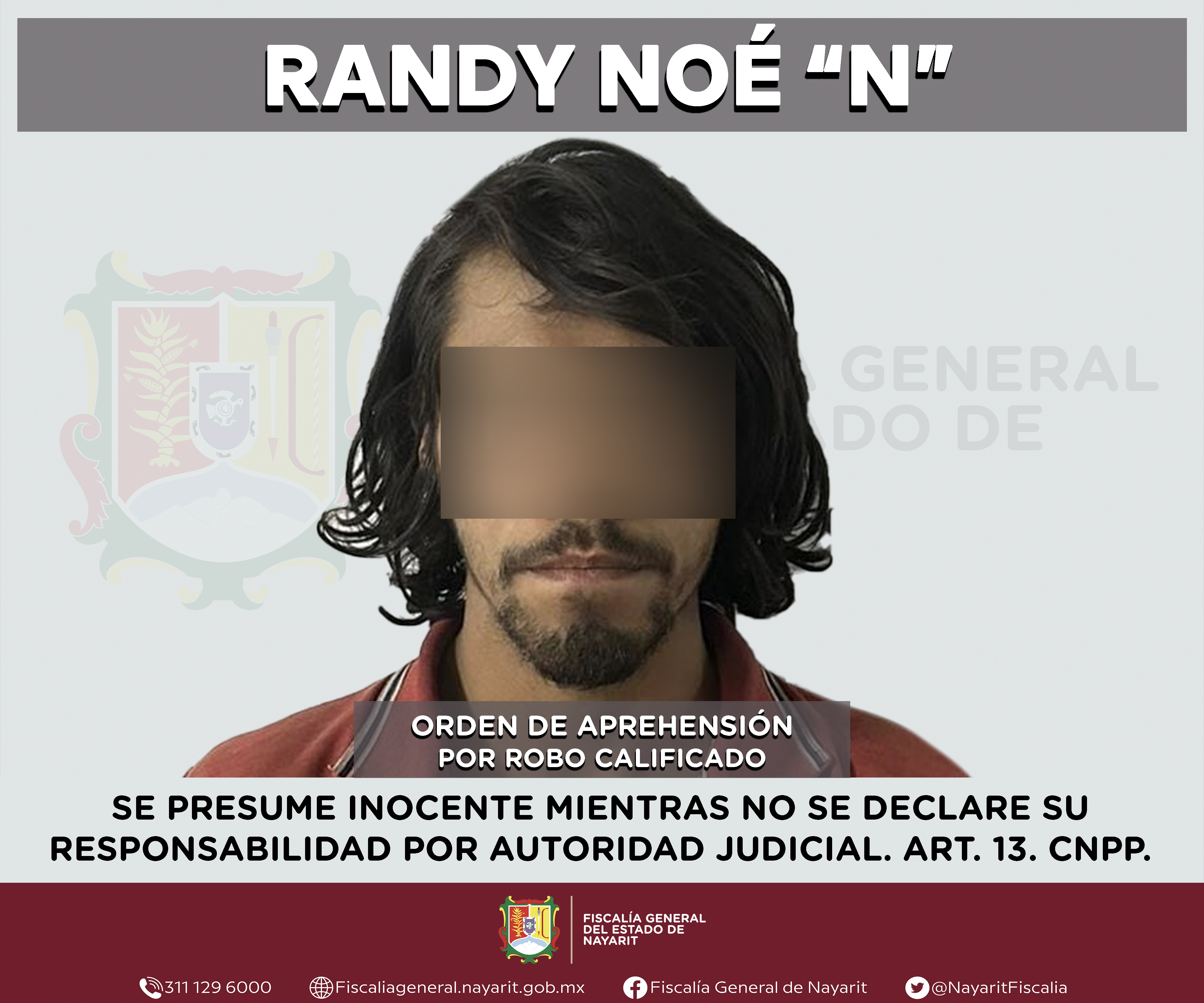 Elementos de la Agencia de Investigación Criminal de Nayarit ejecutaron una orden de aprehensión en la ciudad de Tepic contra Randy Noé “N”, por su presunta participación en hechos que según apreciación de la ley encuadran el delito de robo cal...