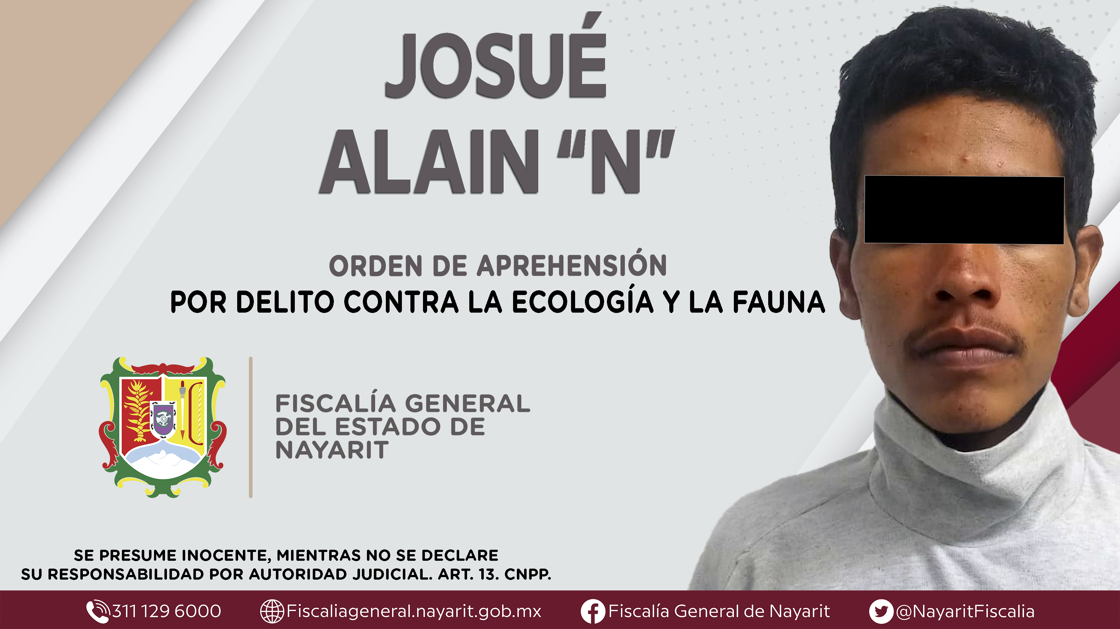 Fiscalía General de Nayarit a través de la Agencia de Investigación Criminal, ejecutó una orden de aprehensión en la ciudad de Tepic contra Josué Alain “N”, por su probable participación en hechos que la ley califica como delito contra la ecol...