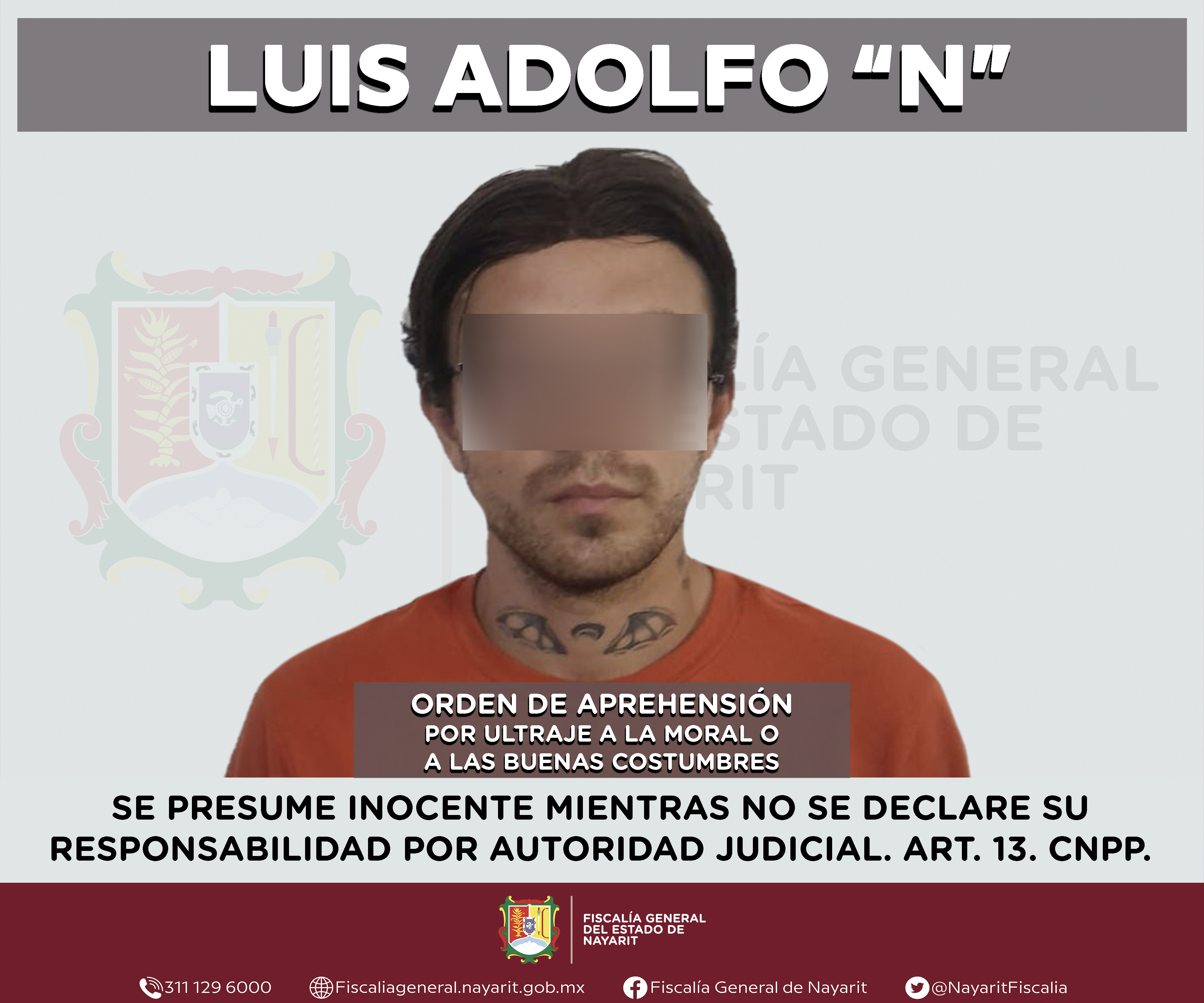 La Fiscalía General de Nayarit a través de la Agencia de Investigación Criminal ejecutó una orden de aprehensión en la capital nayarita contra Luis Adolfo “N”, por su probable participaci...
