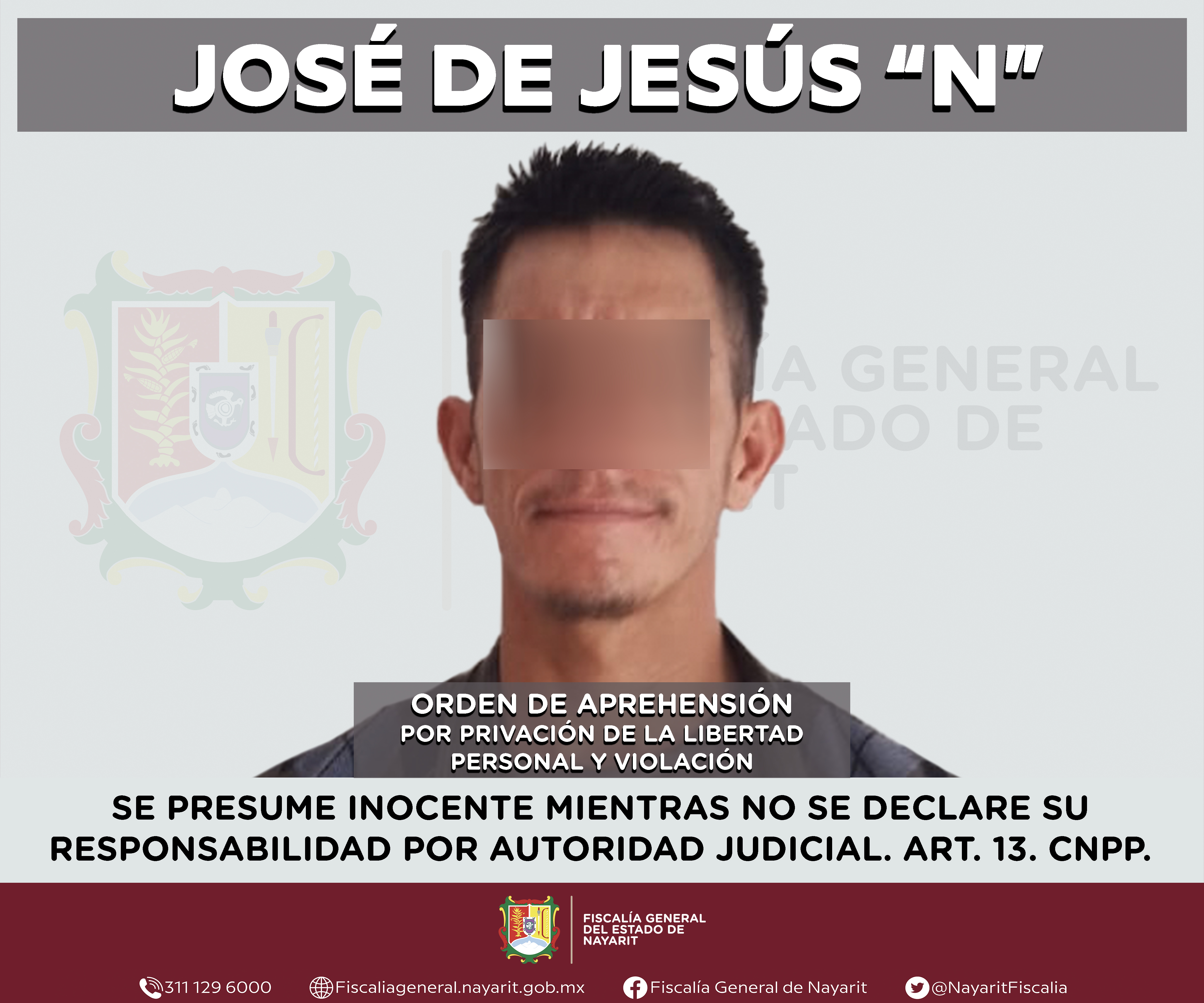 La Fiscalía General de Nayarit a través de la Agencia de Investigación Criminal ejecutó una orden de aprehensión en el municipio de San Pedro Lagunillas contra José de Jesús “N”, por su probable participación en hechos que para la ley configu...