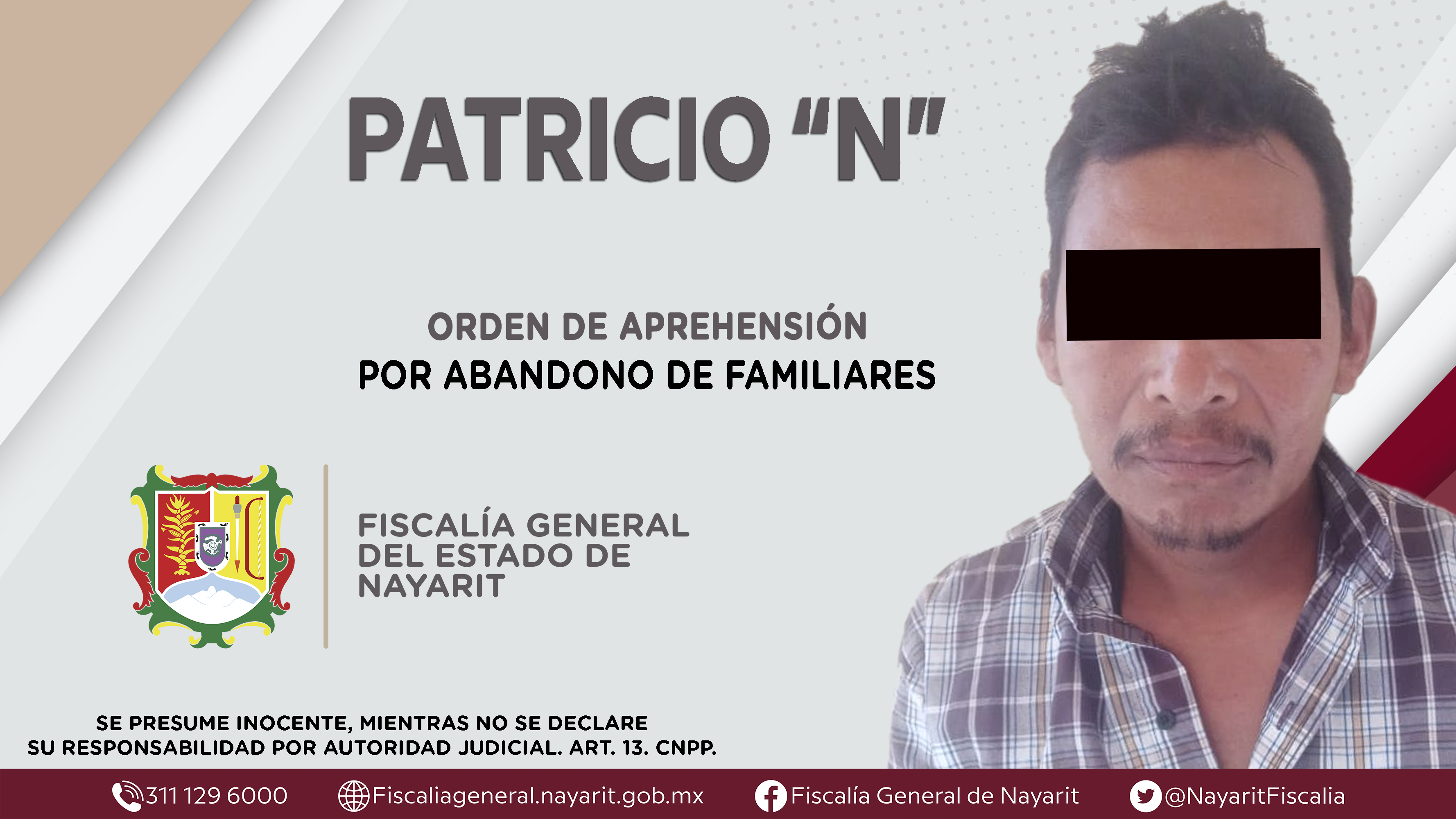 En el poblado Caleras de Cofrado, municipio de Tepic, elementos de la Agencia de Investigación Criminal dieron cumplimiento a una orden de aprehensión que se obsequió contra Patricio “N”, por su probable participación en hechos que la ley calific...
