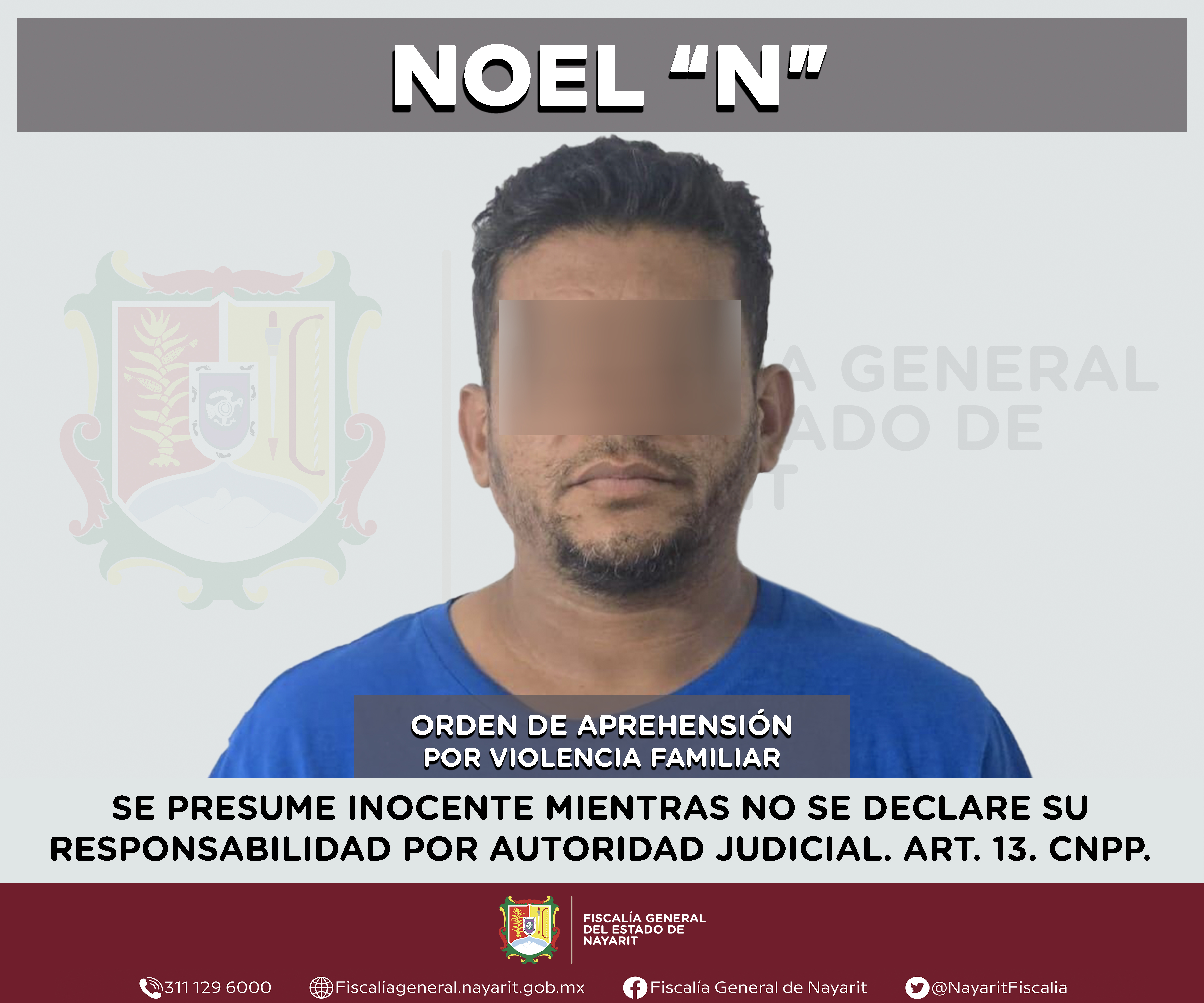 La Fiscalía General del Estado de Nayarit a través de la Agencia de Investigación Criminal, ejecutó una orden de aprehensión en la ciudad de Tepic en contra de Noel “N”, por su probable responsabilidad en el delito de violencia familiar, cometid...