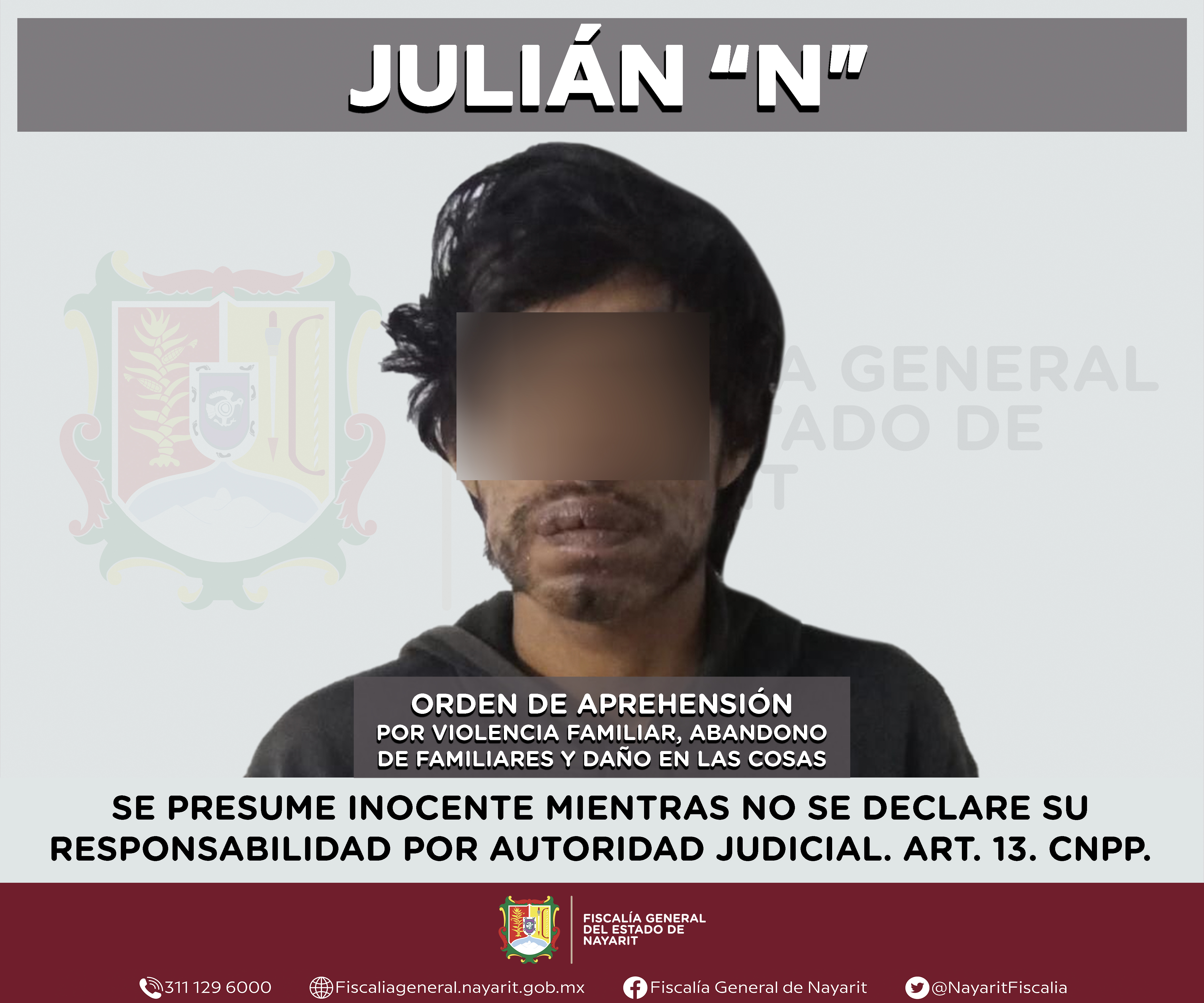 La Fiscalía General del estado de Nayarit informa que derivado de trabajos de investigación, elementos de la Agencia de Investigación Criminal cumplimentaron en la ciudad de Tepic tres órdenes de aprehensión en contra de Julián “N”.\r\n\r\nLa p...
