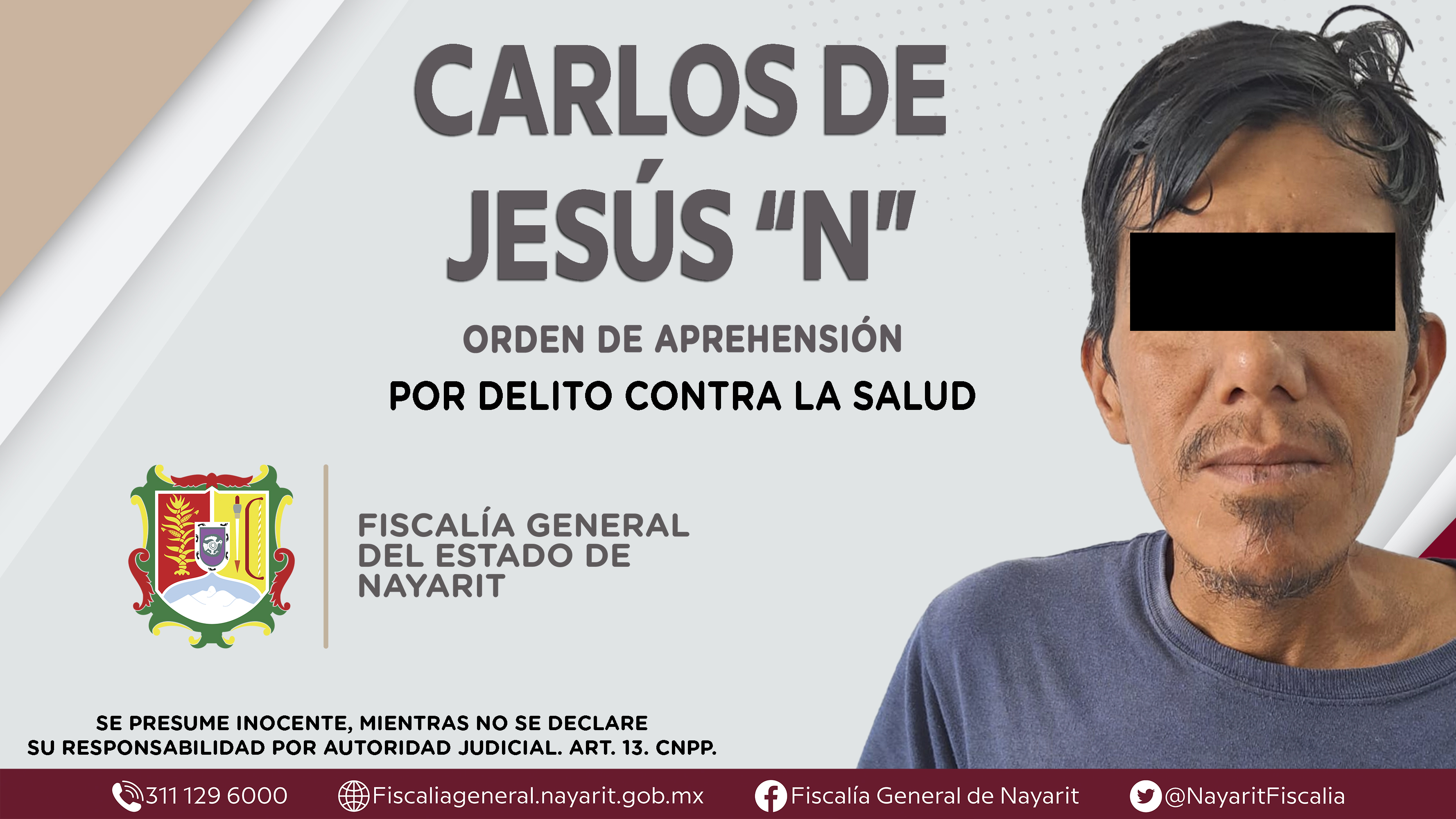Elementos de la Agencia de Investigación Criminal de Nayarit ejecutaron una orden de aprehensión contra Carlos de Jesús “N”, por su presunta participación en hechos que según apreciación de la ley encuadran el delito contra la salud en su modal...