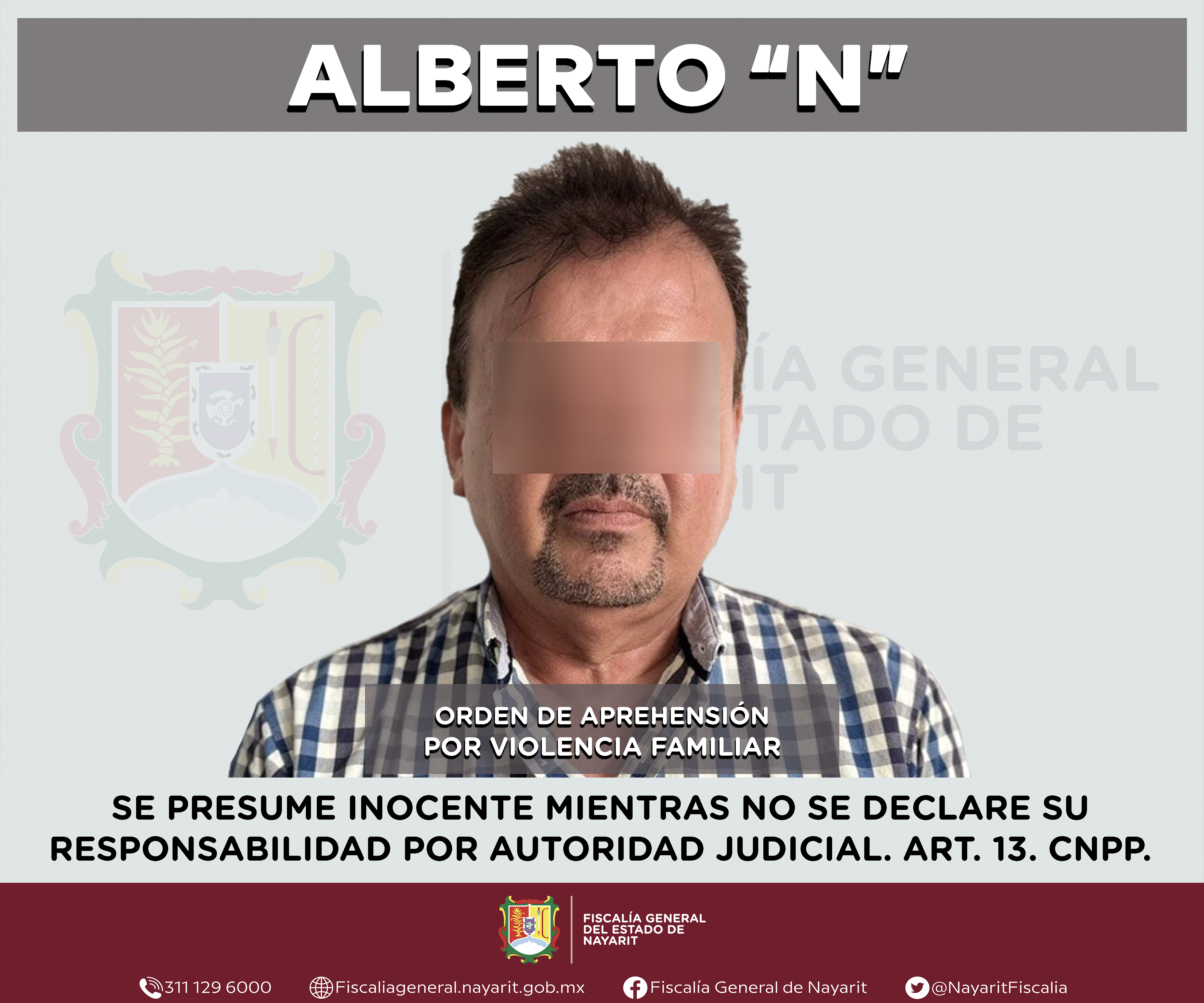 Elementos de la Agencia de Investigación Criminal de Nayarit cumplimentaron una orden de aprehensión en la capital nayarita contra Alberto “N”, por su probable participación en hechos que la ley tipifica como delito de violencia familiar en agravi...
