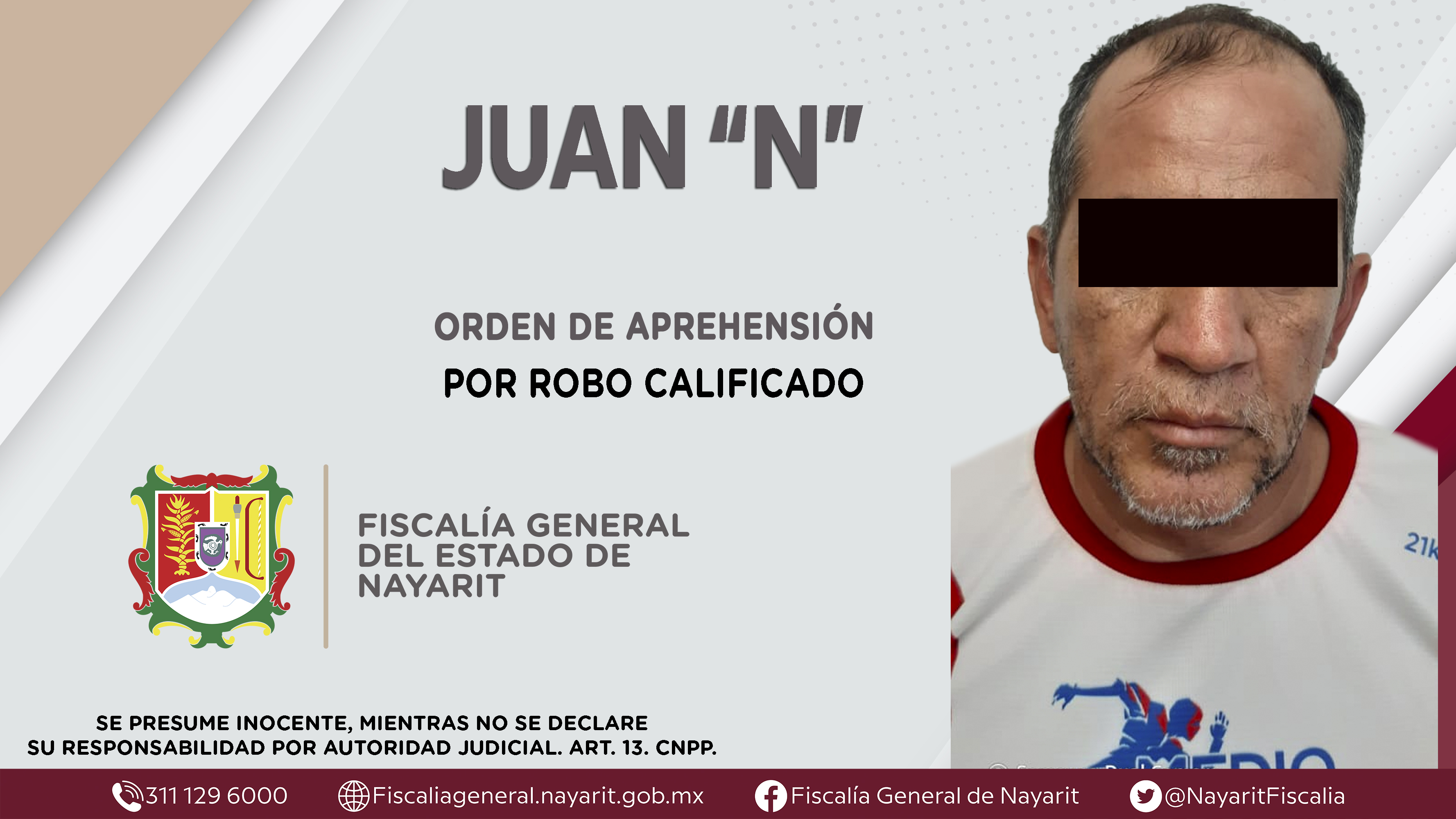 En la ciudad de Mazatlán, Sinaloa y con la colaboración de la Fiscalía General de esa entidad, elementos de la Agencia de Investigación Criminal de Nayarit dieron cumplimiento a una orden de aprehensión que se obsequió contra Juan “N”, por su p...